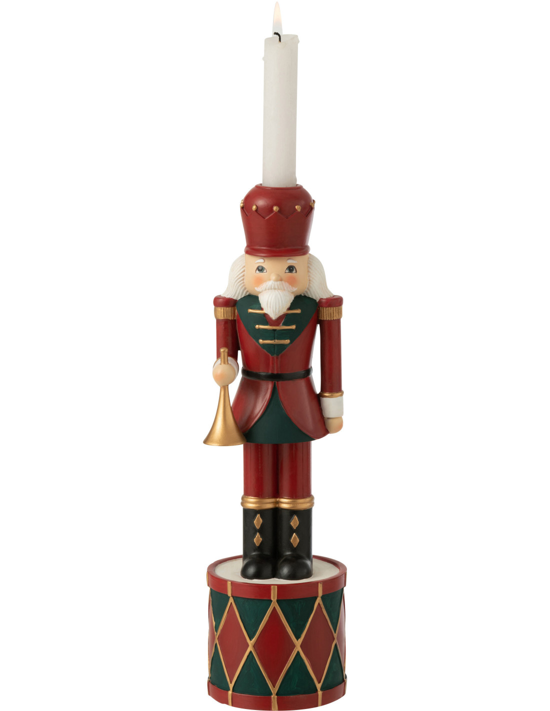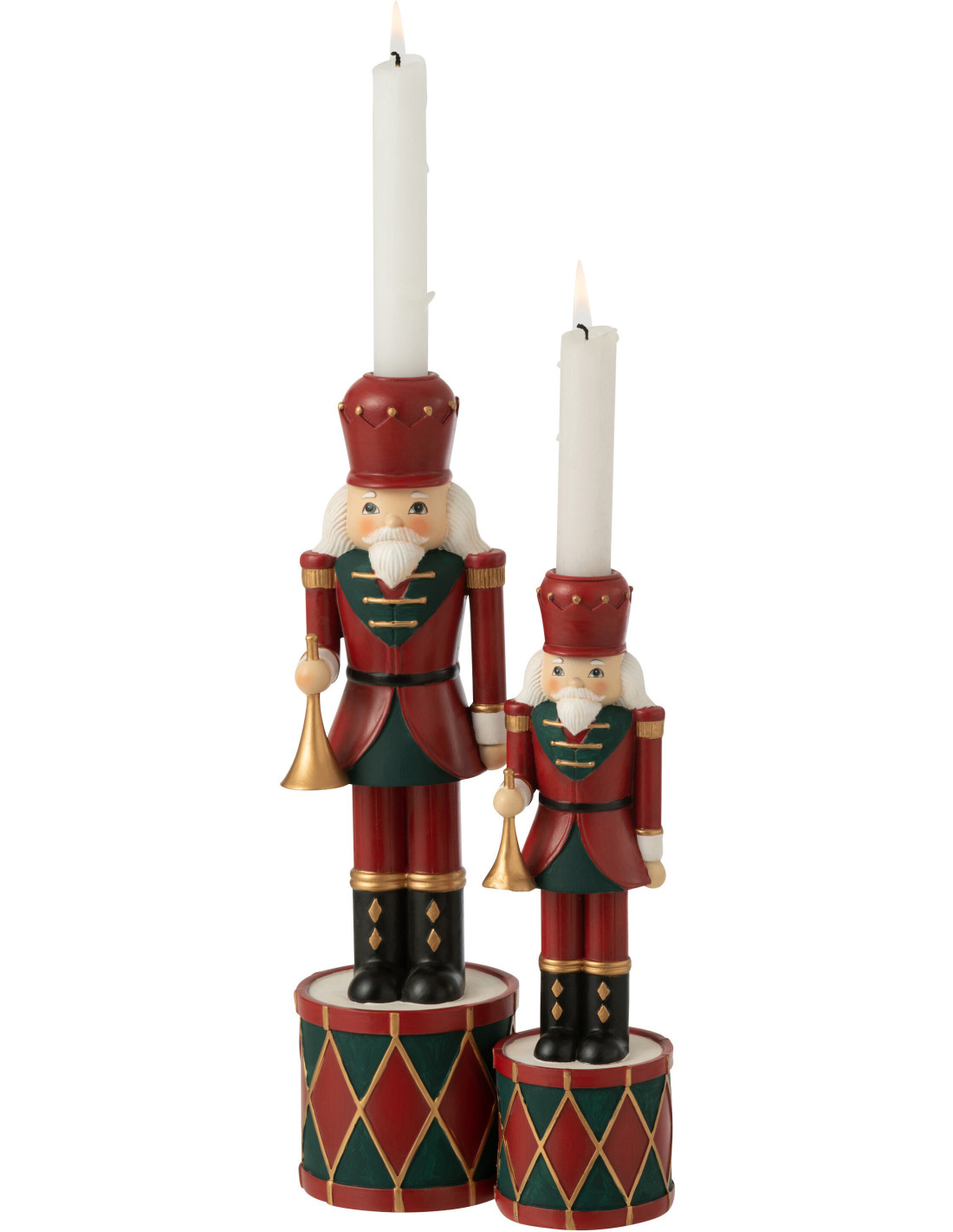 Bougeoir sur pied Casse-noisette Hauteur 35 cm en Résine Rouge Vert