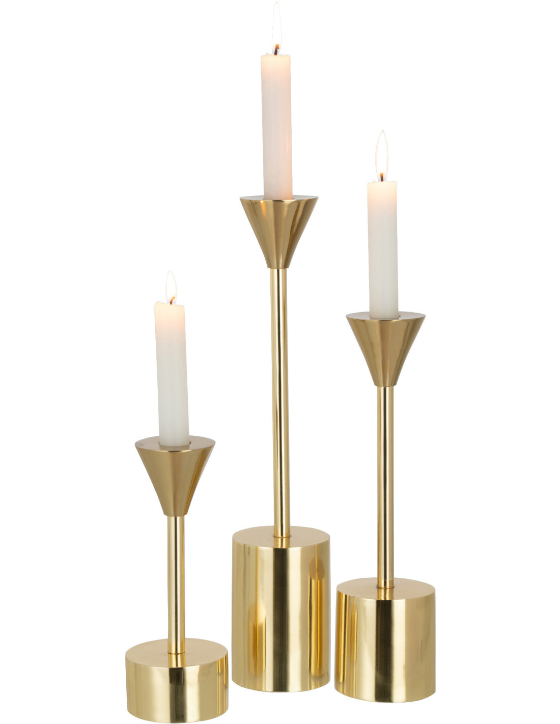 Bougeoir sur pied Emma Hauteur en Métal Doré Brillant (Lot de 2)