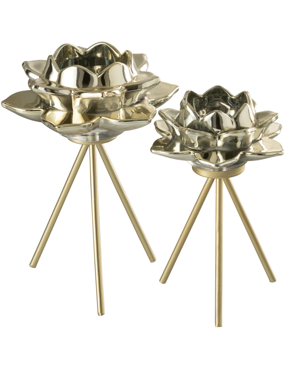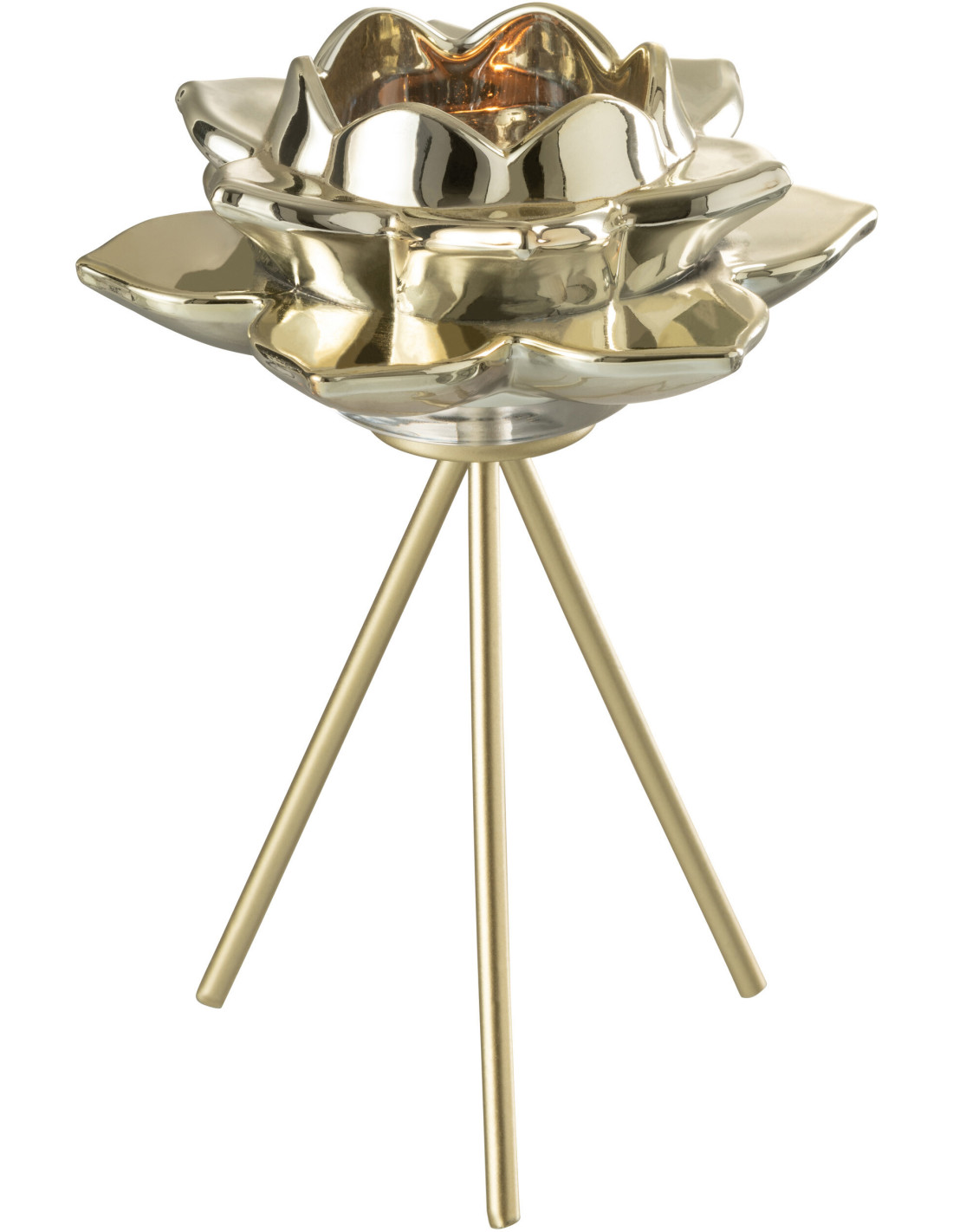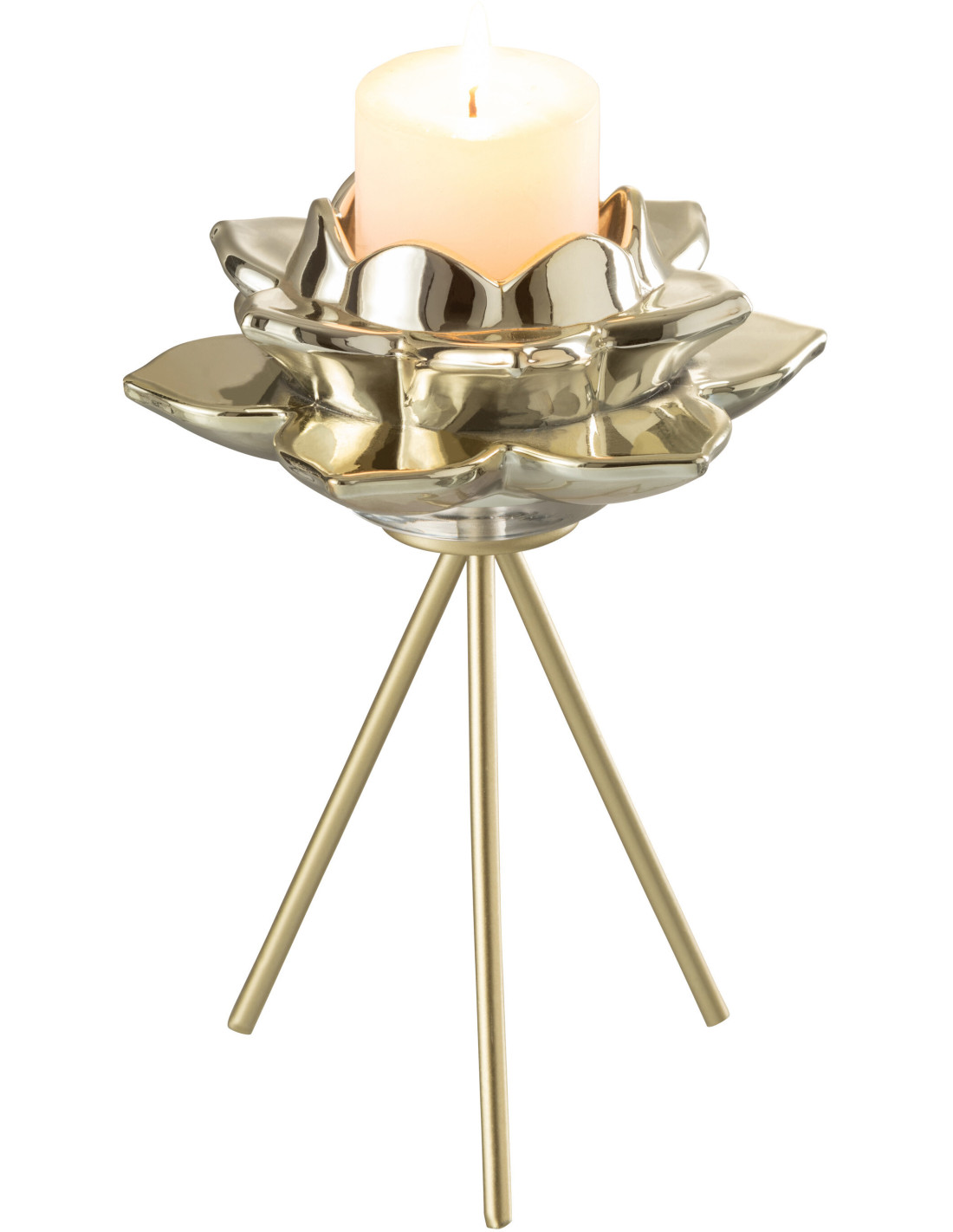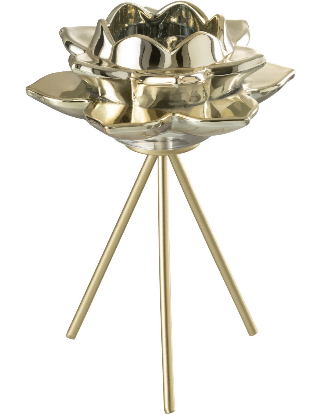 Bougeoir sur pied Fleur XL Hauteur 21 cm en Métal Doré Darise