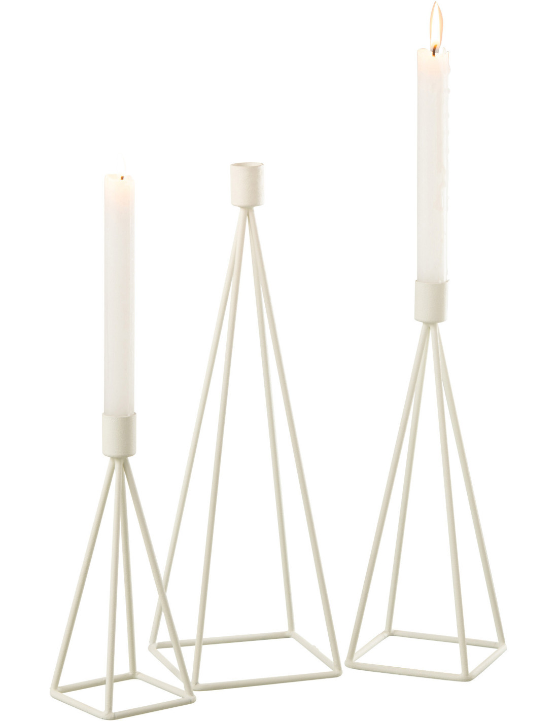 Bougeoir sur pied Géométrique Waxo Hauteur en Métal Blanc (Lot de 3)