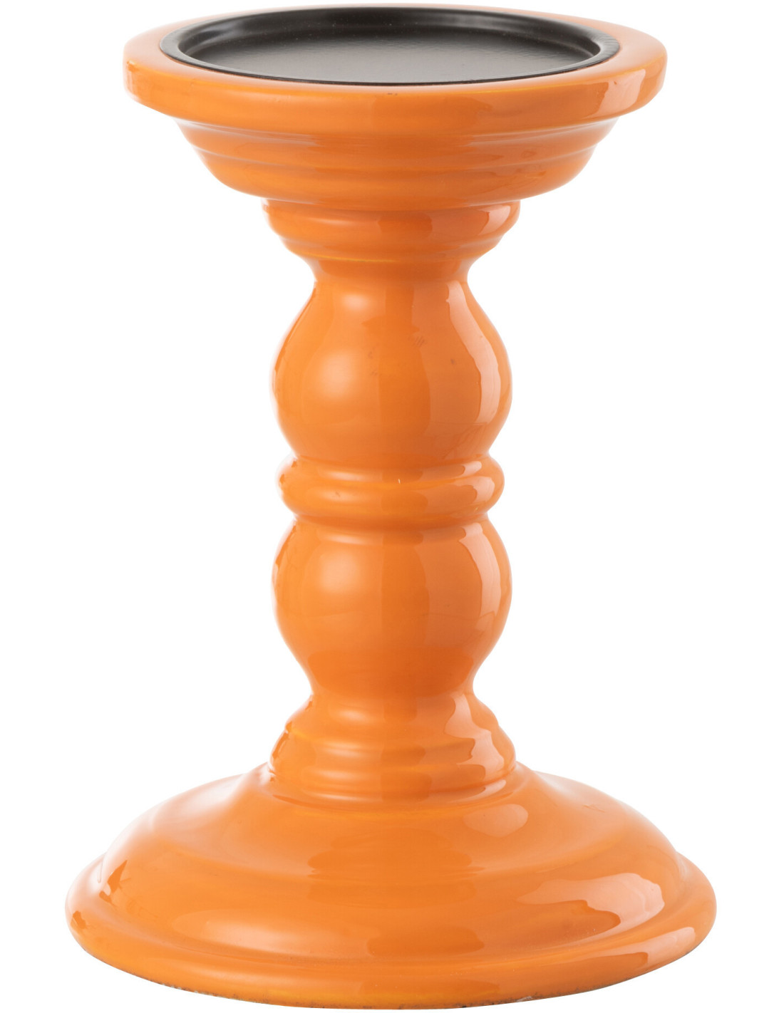 Bougeoir sur pied moderne Hauteur 17 cm en Bois de manguier Orange Métal Noir Oken