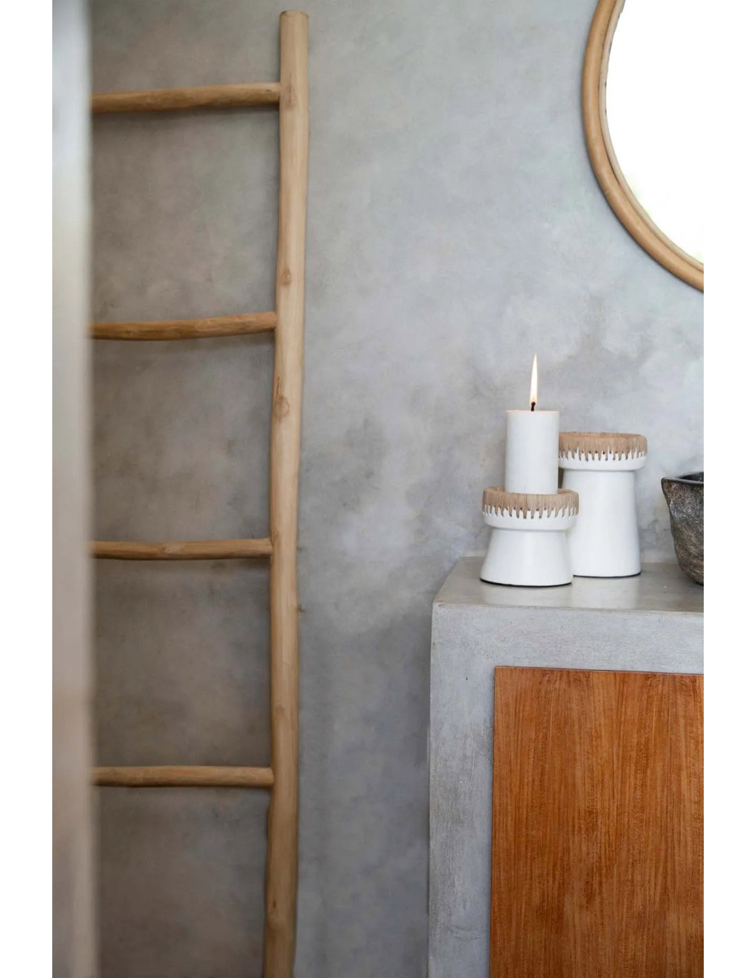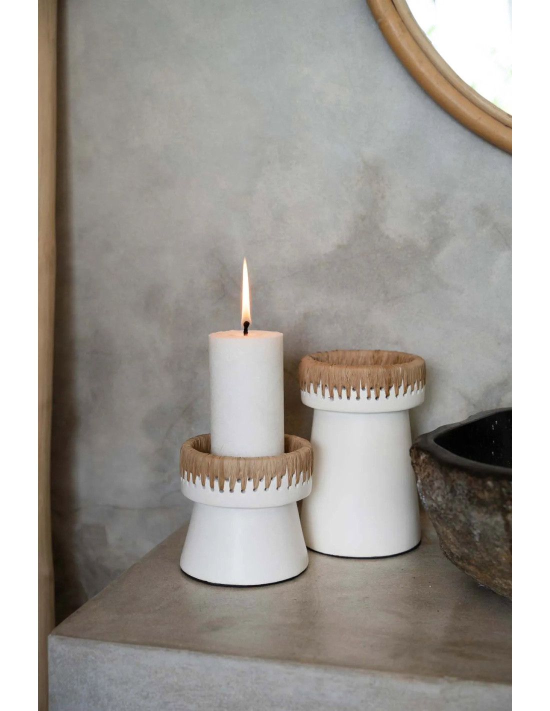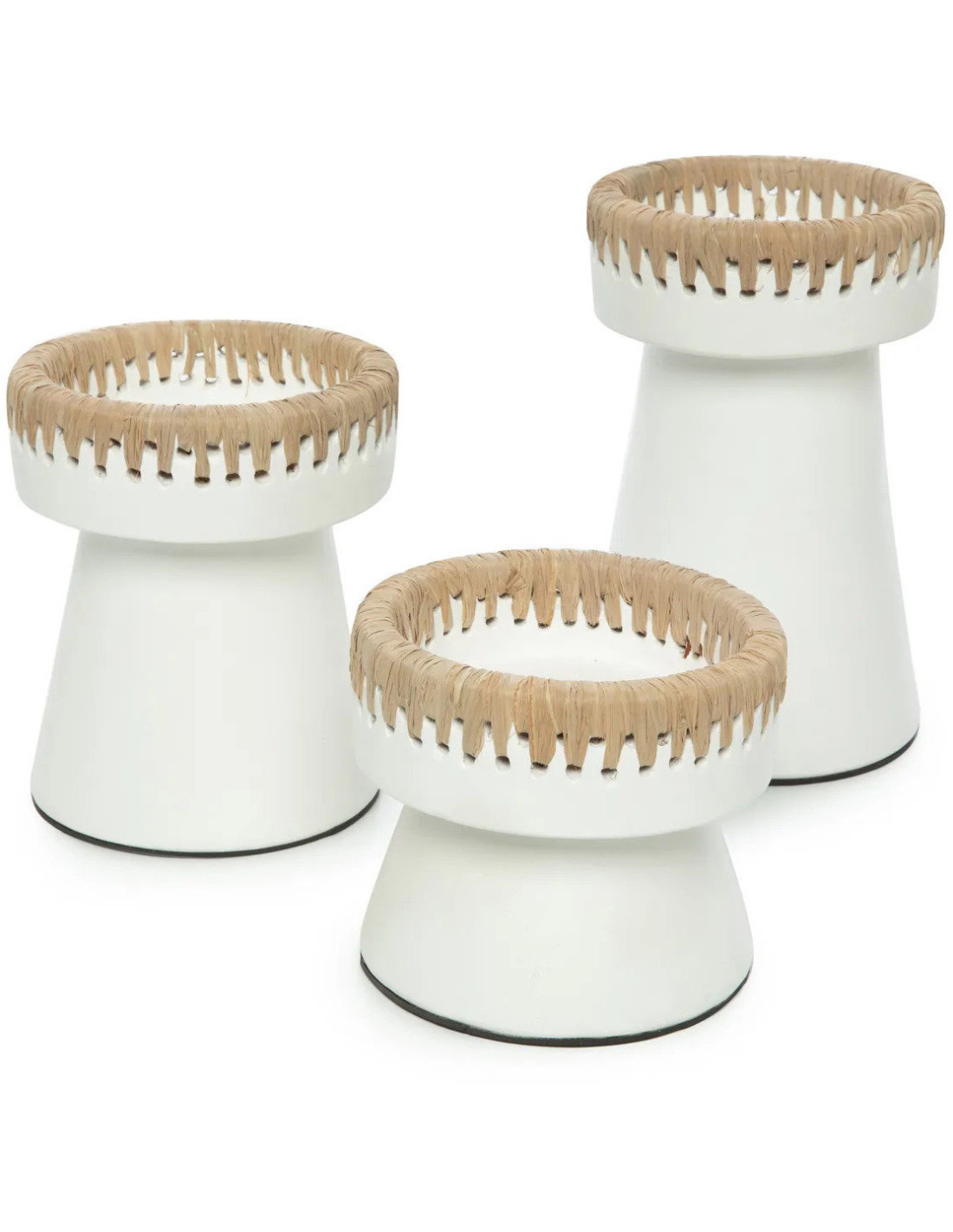 Bougeoir sur pied Rond Hauteur 12 cm en Terre cuite Blanc Raphia Naturel The Pretty