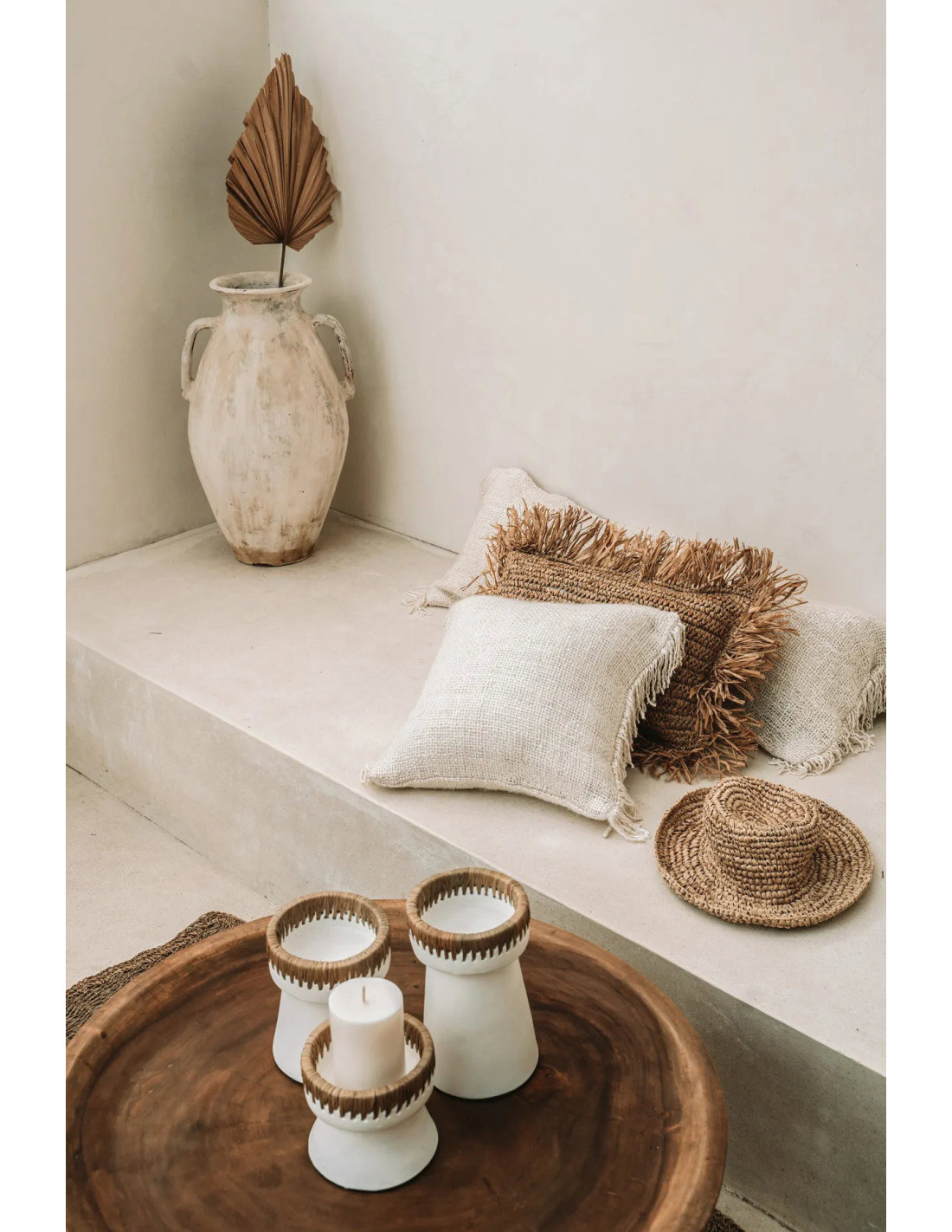 Bougeoire sur pied Rond Hauteur 12 cm en Terre cuite Blanc Raphia Naturel The Pretty