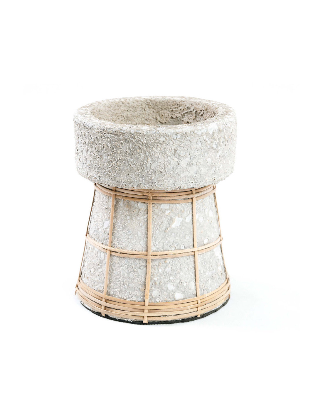 Bougeoire sur pied Rond Hauteur 16 cm en Terre cuite Gris béton Raphia Naturel The Serene