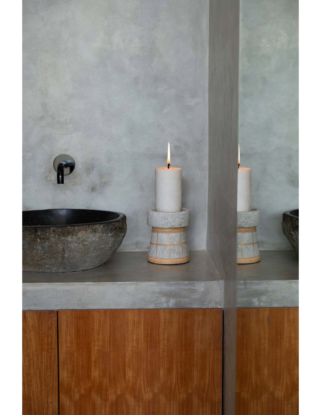 Bougeoir sur pied Rond Hauteur 16 cm en Terre cuite Gris béton Raphia Naturel The Serene