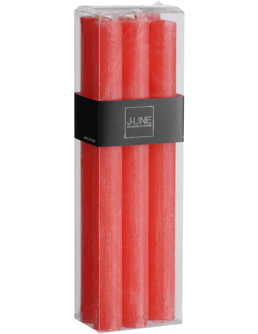 Bougie Cylindrique Rouge J-Line en Cire 13 heures Hauteur 25 cm (Lot de 6)
