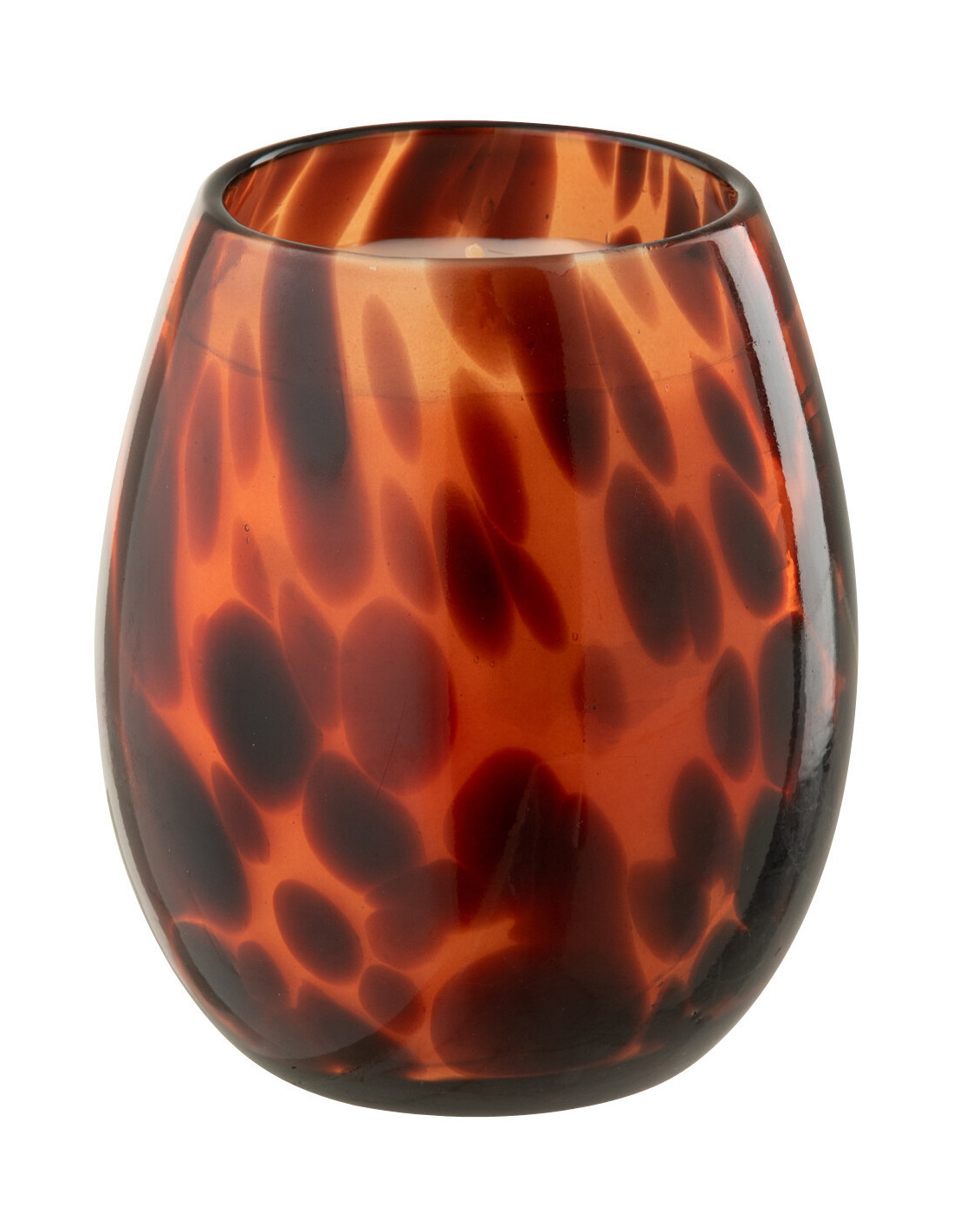 Bougie déco style art déco H 13 cm Verre Orange Noir Motif taches Mia