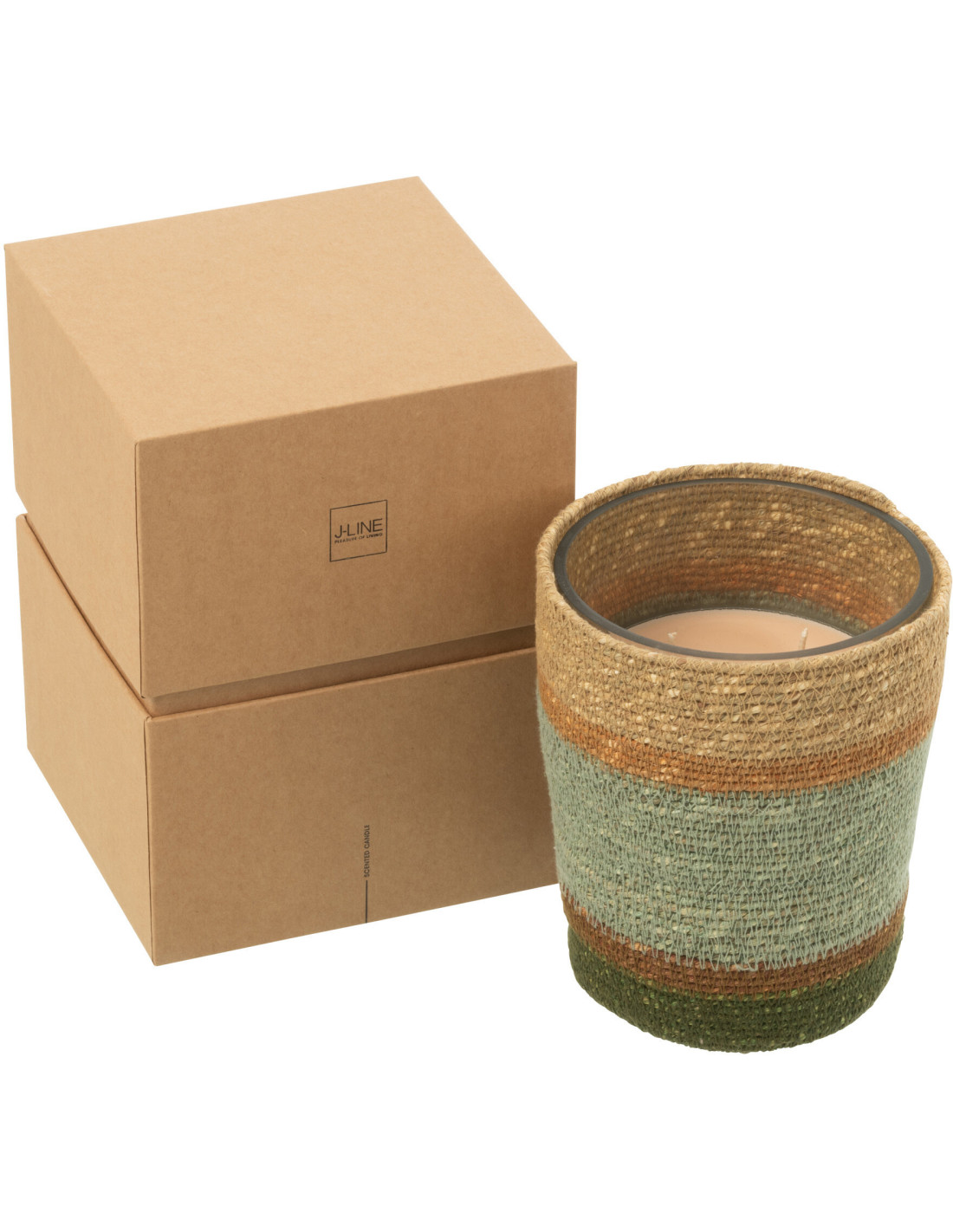 Bougie ethnique chic Mélange boisé Herbla Serenity 55 H Rotin Naturel Tressé Verre Cire Flamia