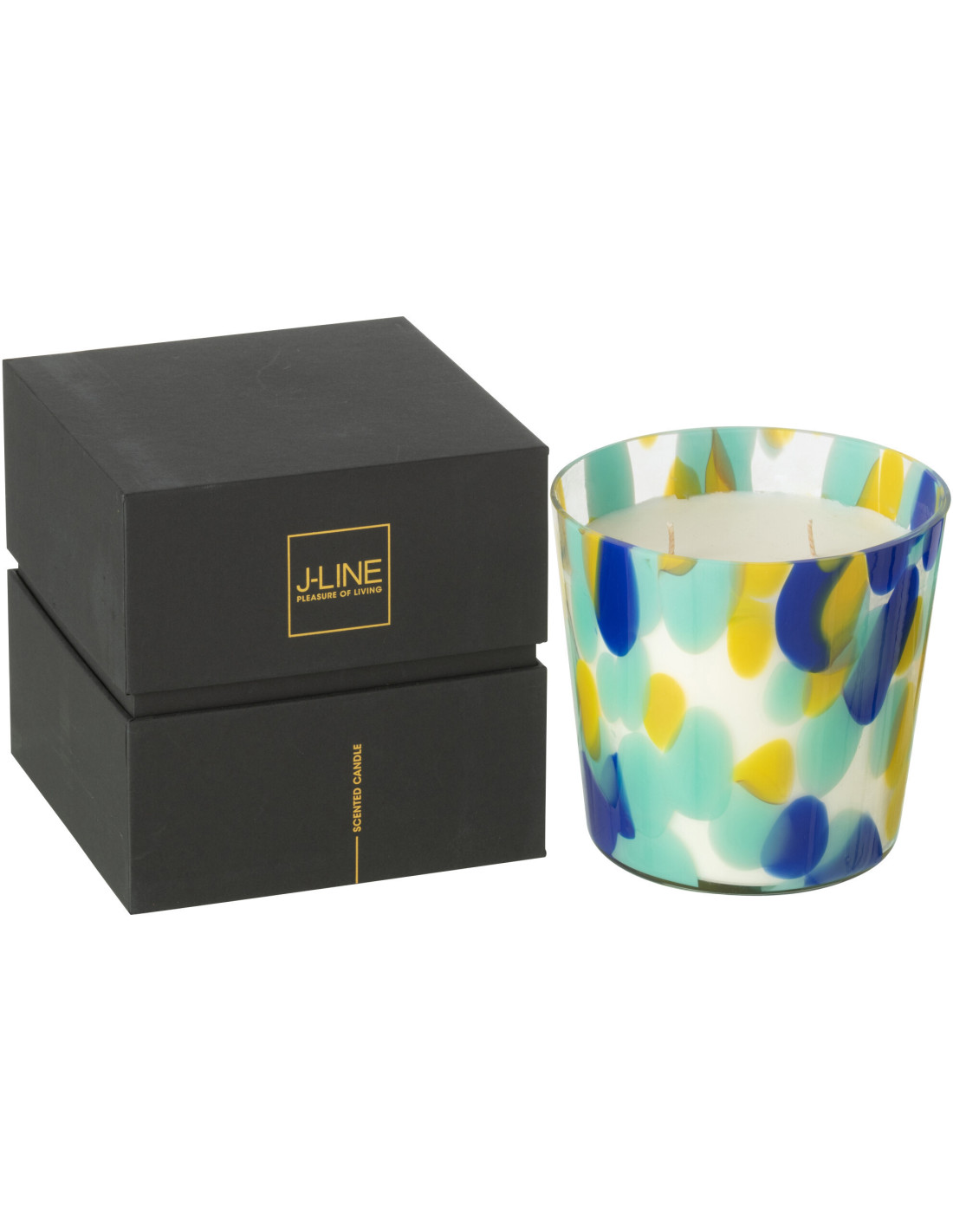Bougie longue durée seventies Mélange frais White Tea 50 H Verre Bleu Jaune Moucheté Cire Noa