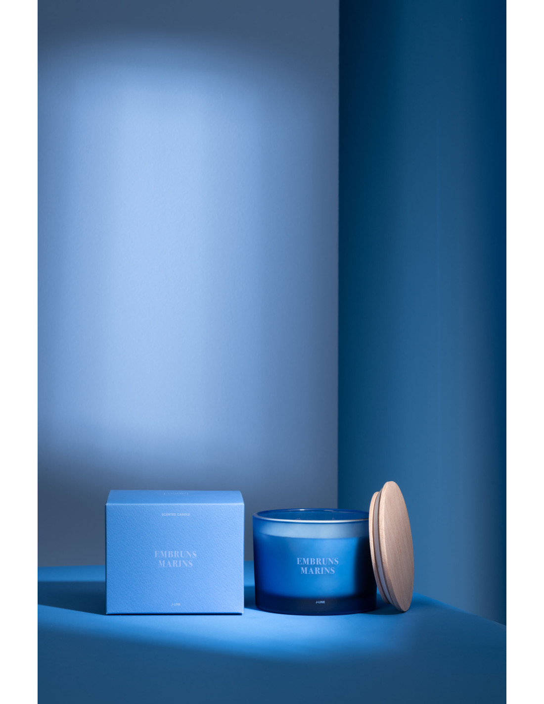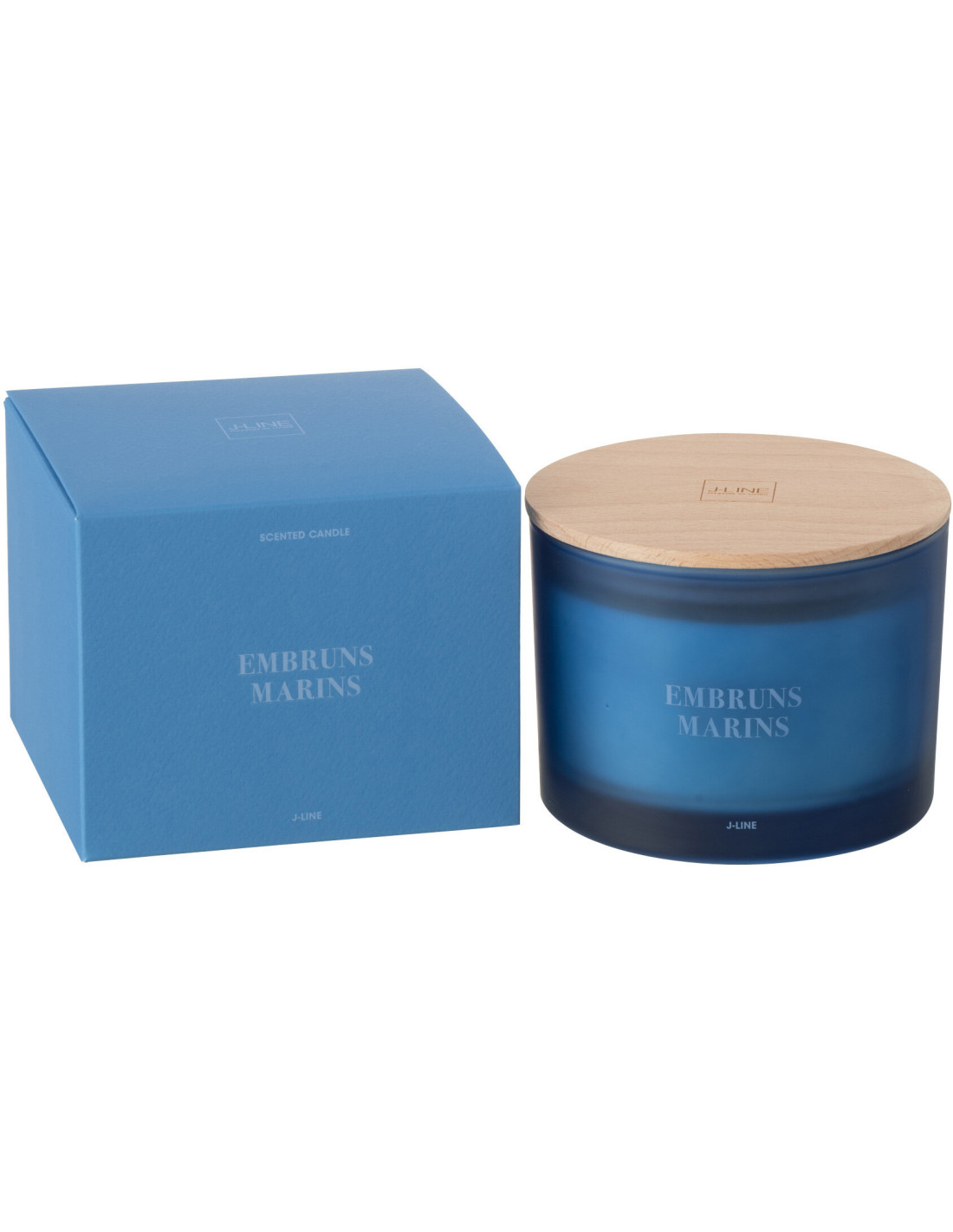Bougie Parfumée 3 mèches Mélange frais Embruns Marins 25 H Verre Bleu Cire Accords Essentiels