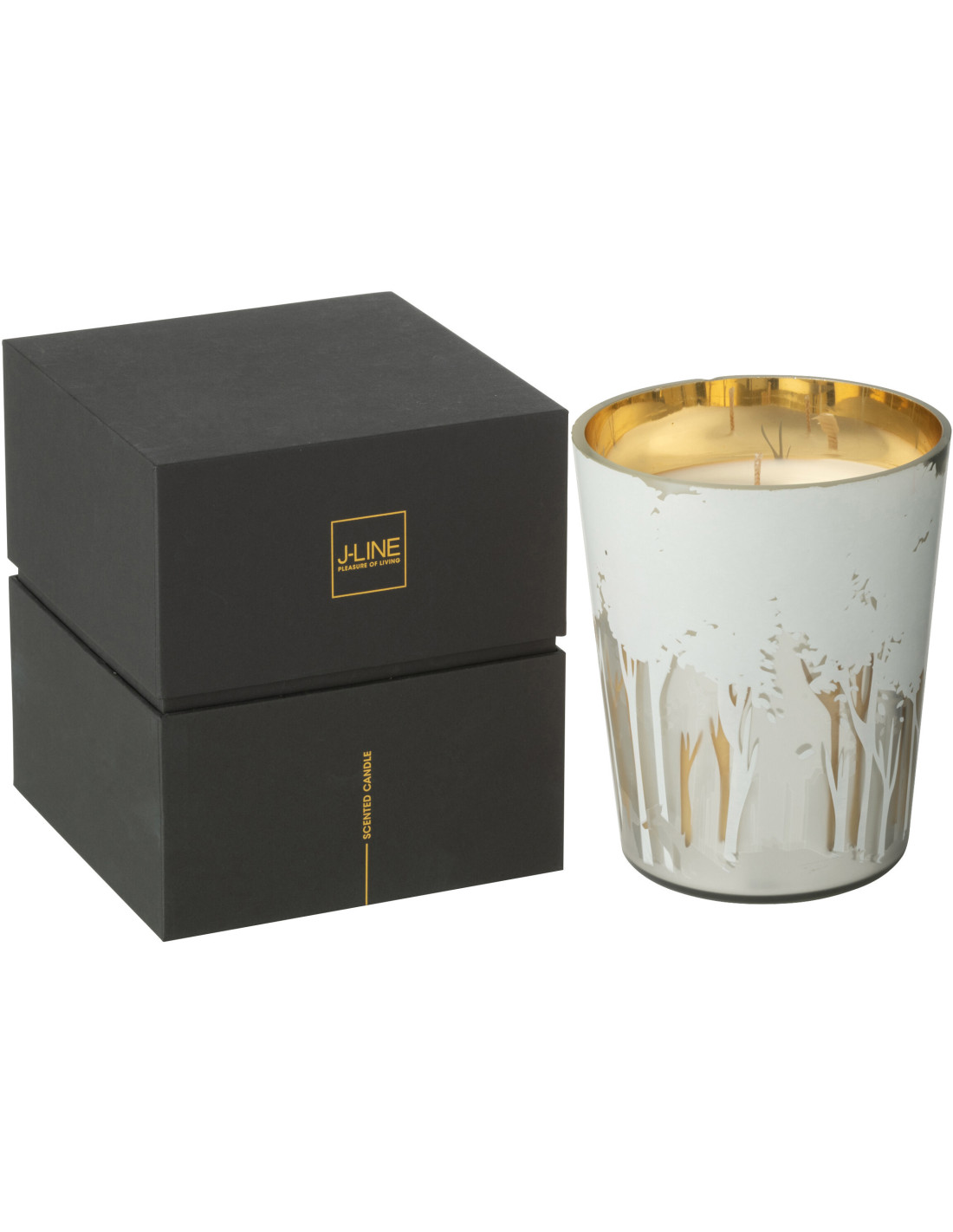 Bougie parfumée longue durée Ayra 68 H Verre Blanc Doré Motif forêt Soja Noa