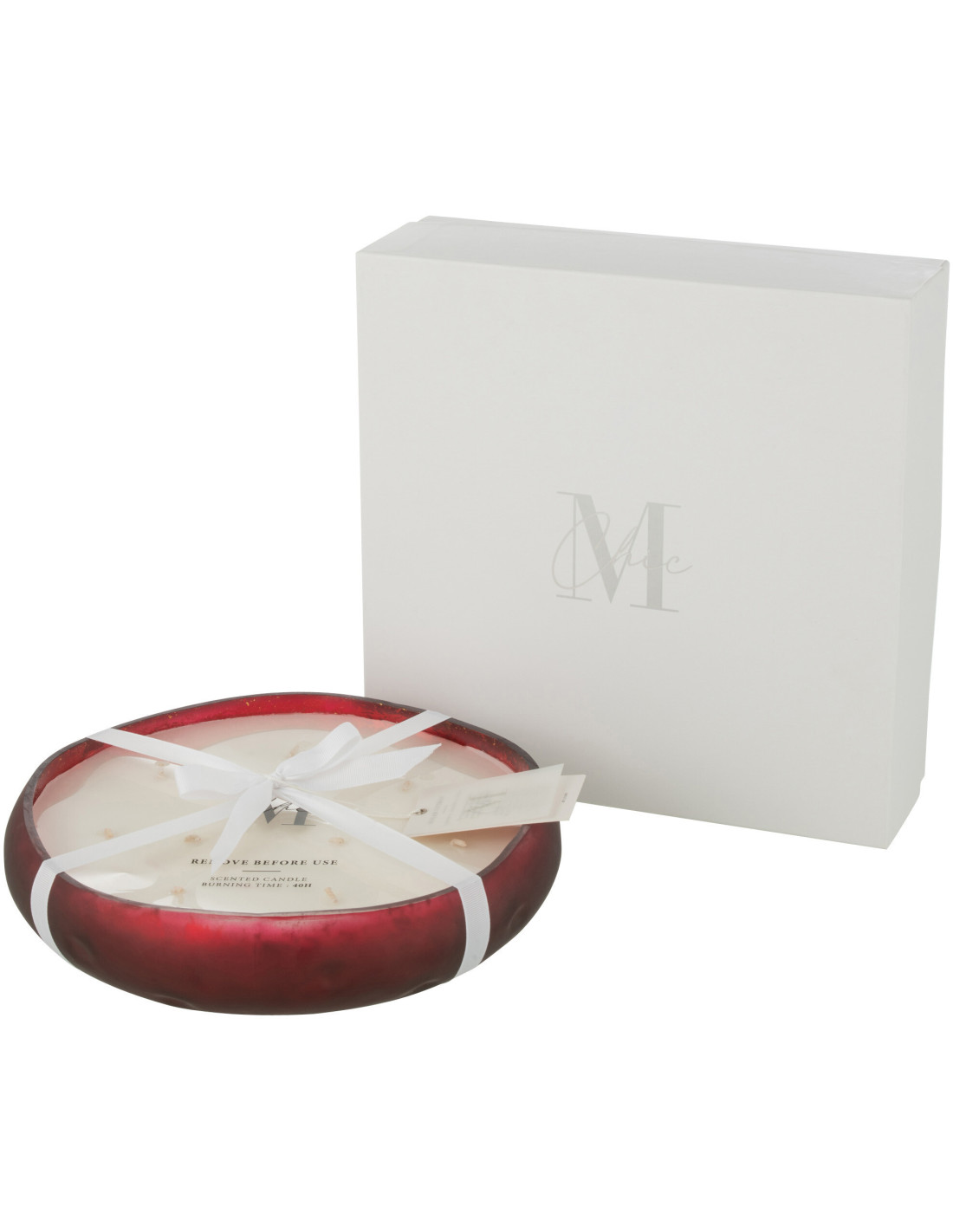 Bougie parfumée XL Boisée 40 heures Livia Parfum Oud & Ambre avec photophore en Verre Rouge