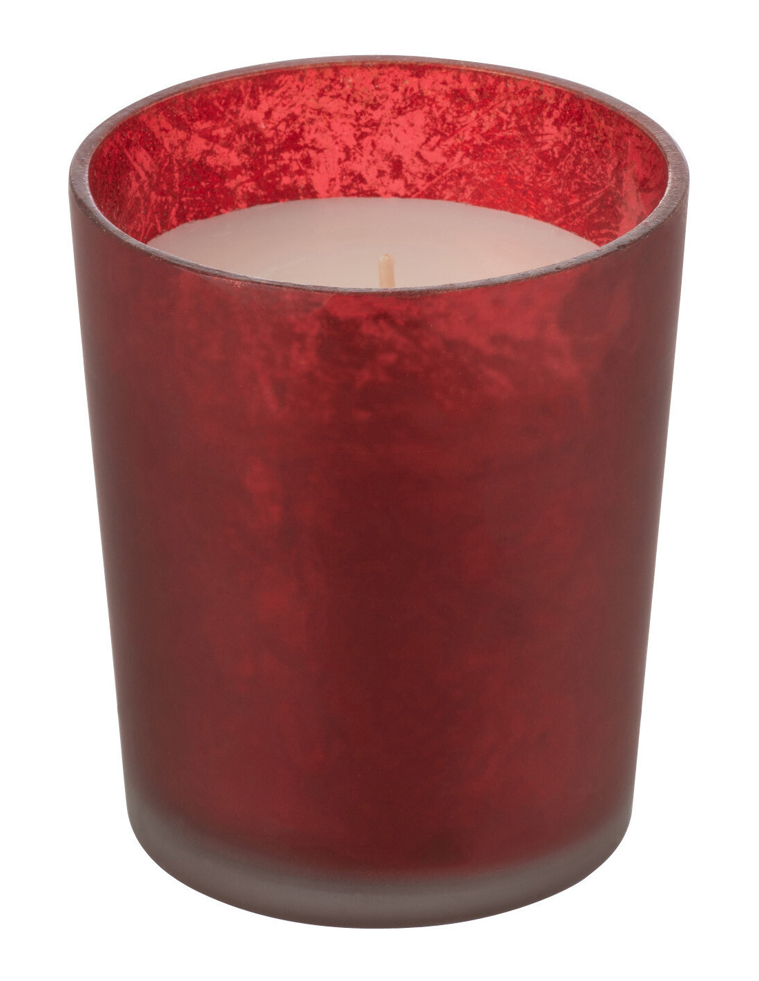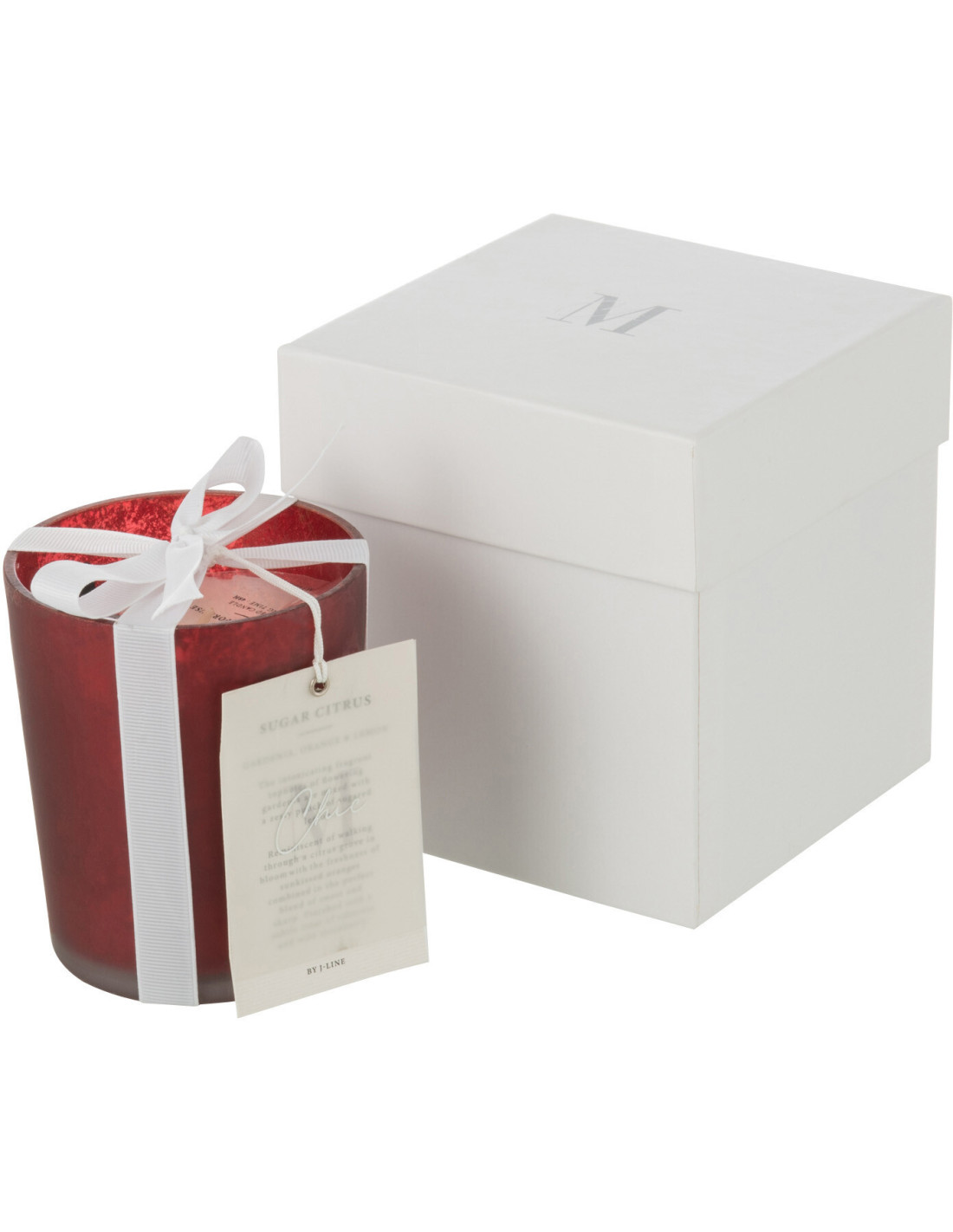 Bougie parfumée XL Boisée 48 heures Livia Parfum Oud & Ambre avec photophore en Verre Rouge