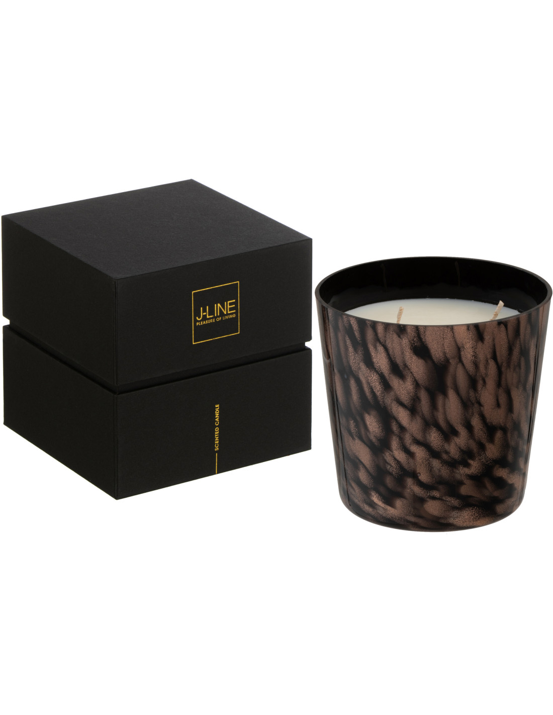 Bougie parfumée XL Boisée 50 heures Noa Parfum Bois de Santal avec photophore en Verre Noir Doré