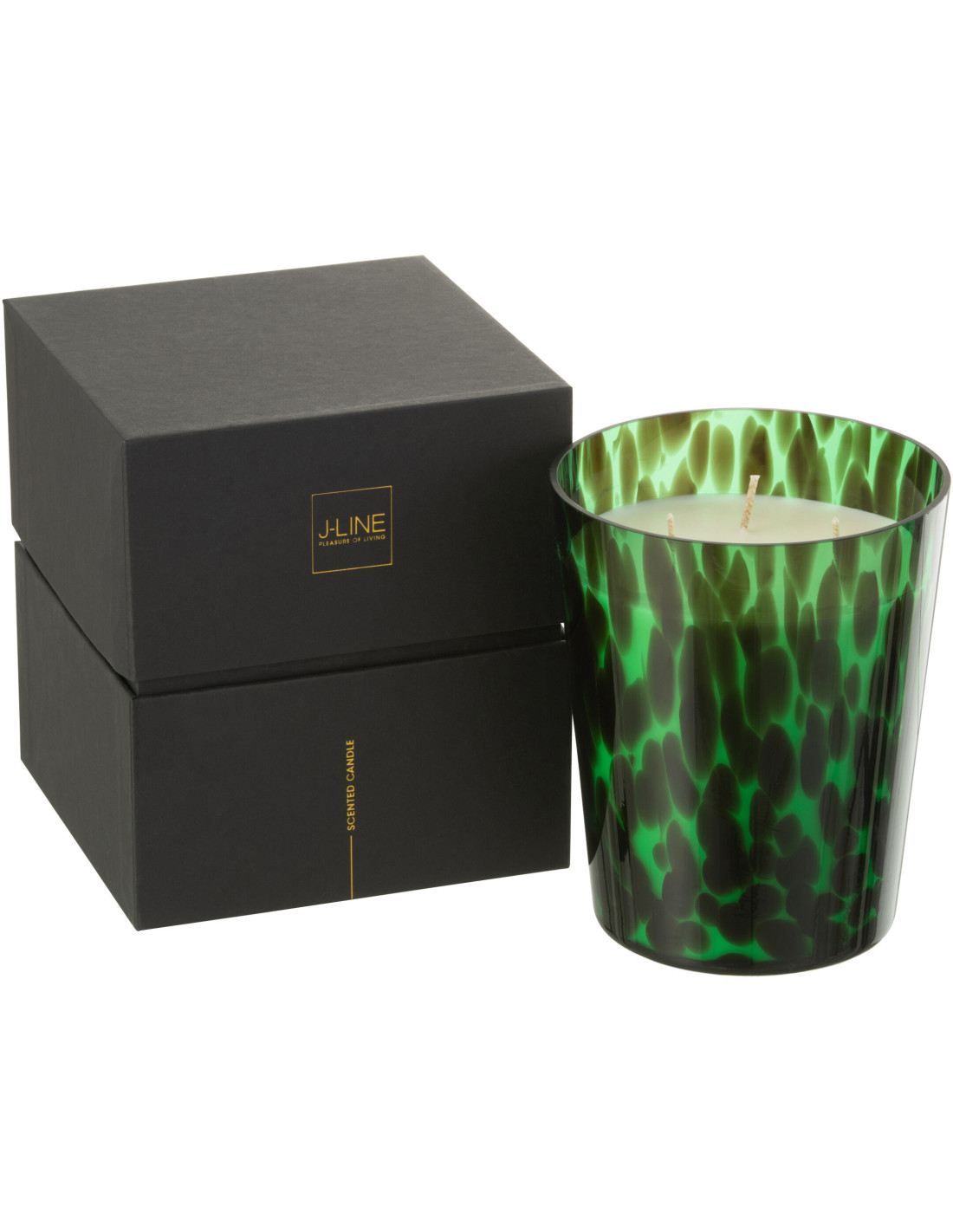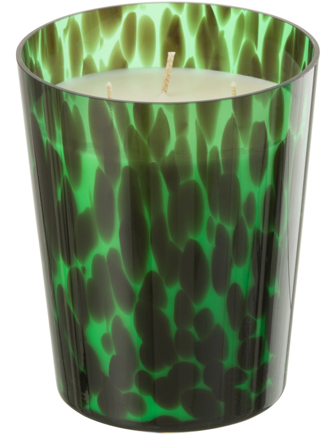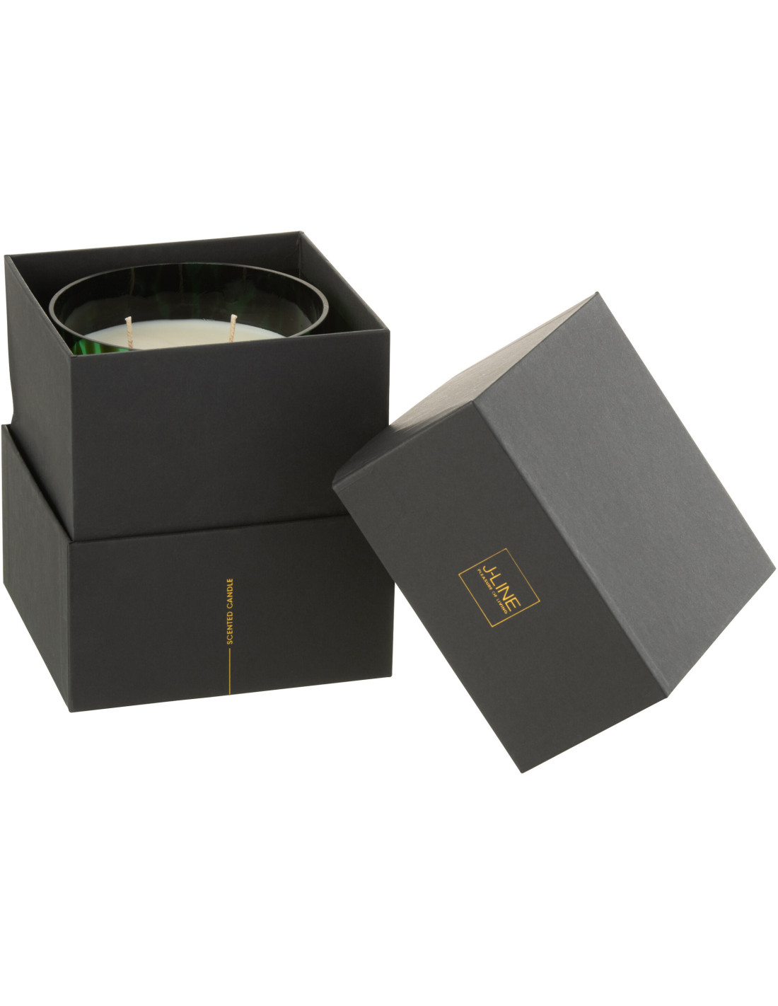 Bougie parfumée XL Boisée 68 heures Noa Parfum Bois de Santal avec photophore en Verre Vert