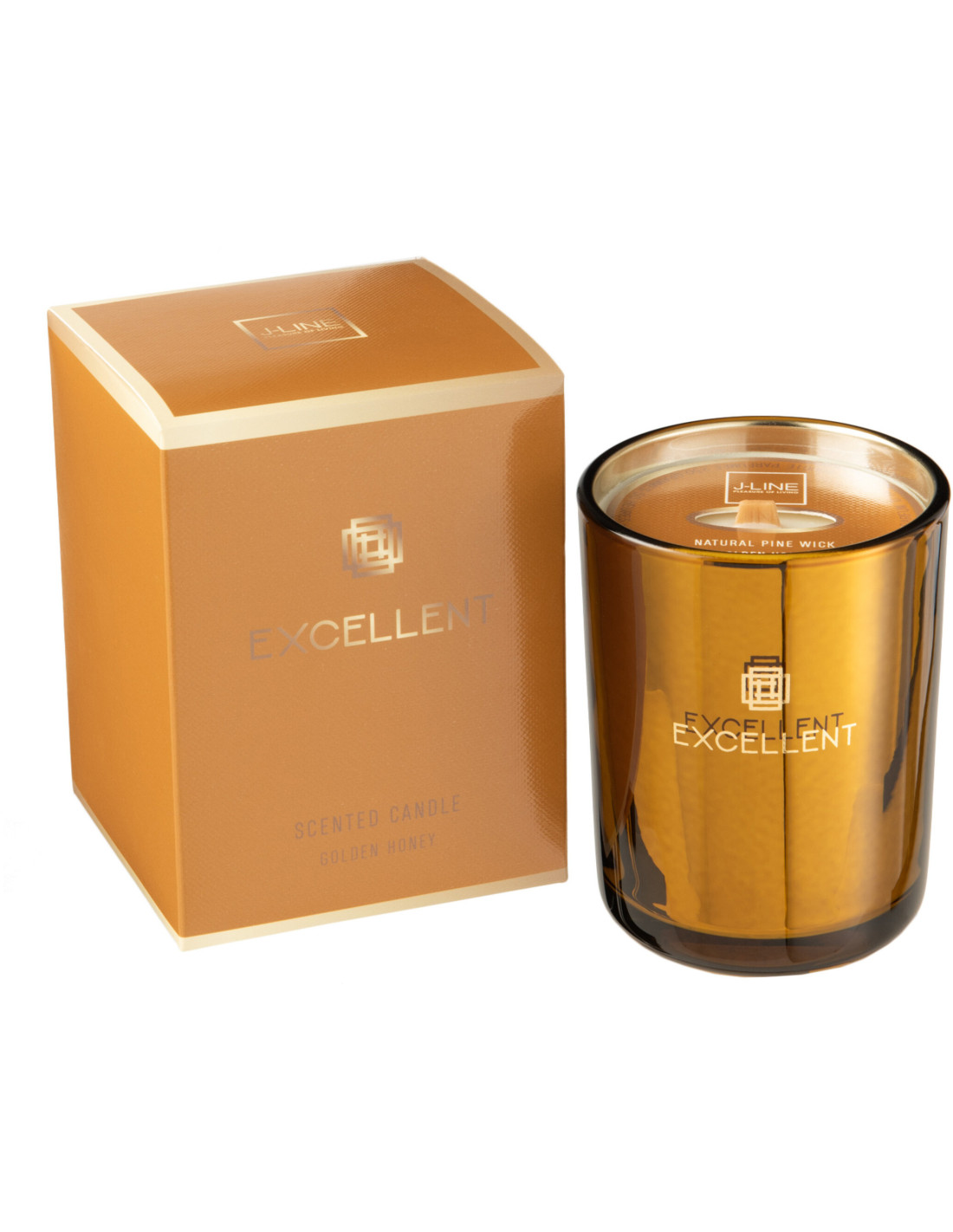 Bougie parfumée XL Florale 50 heures Excellent Parfum Golden Honey avec photophore en Verre Ocre
