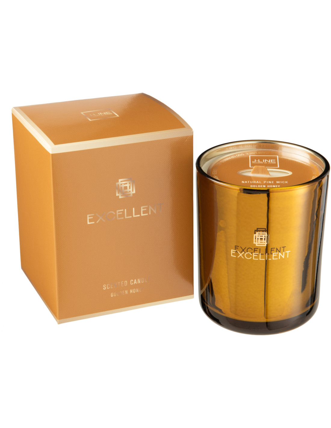 Bougie parfumée XXL Florale 80 heures Excellent Parfum Golden Honey avec photophore en Verre Ocre