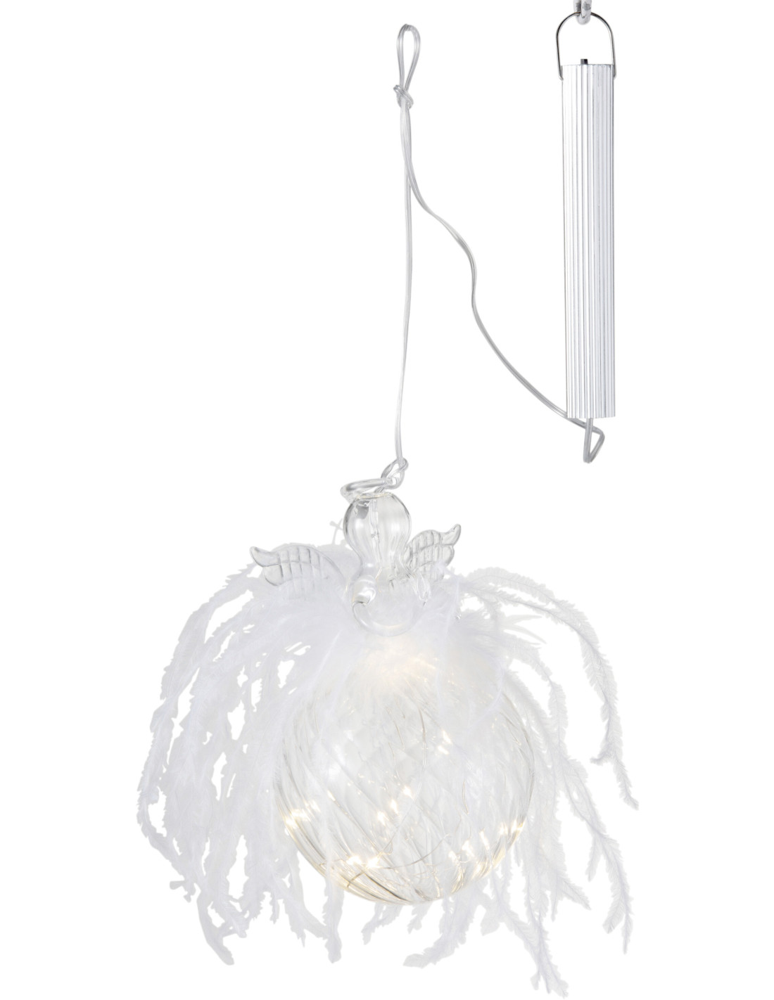 Boule de Noël Ange lumineuse Led XL en Verre Blanc Avec plumes - 3