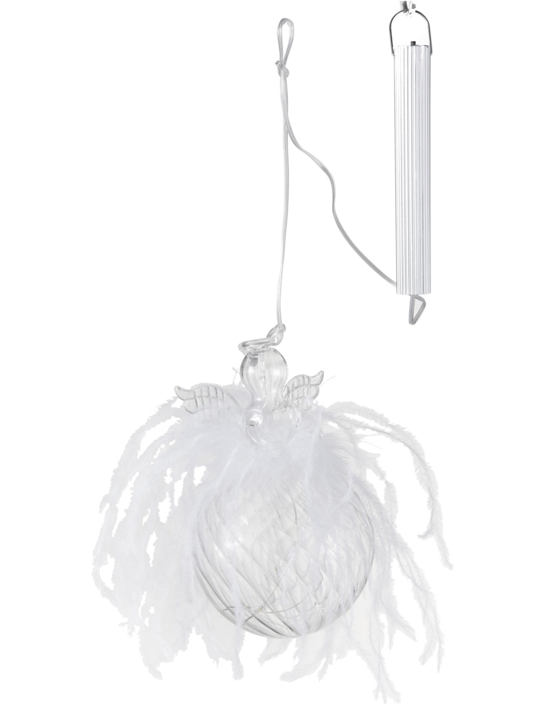 Boule de Noël Ange lumineuse Led XL en Verre Blanc Avec plumes - 1