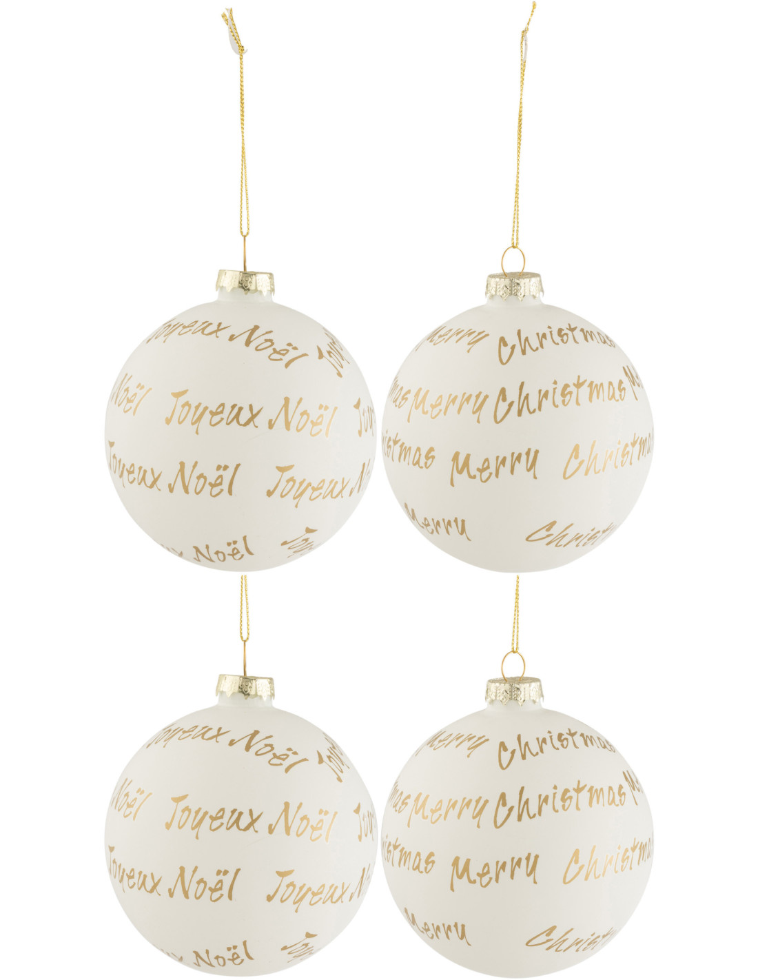 Boule de Noël avec message en Verre Blanc Doré (Lot de 4)