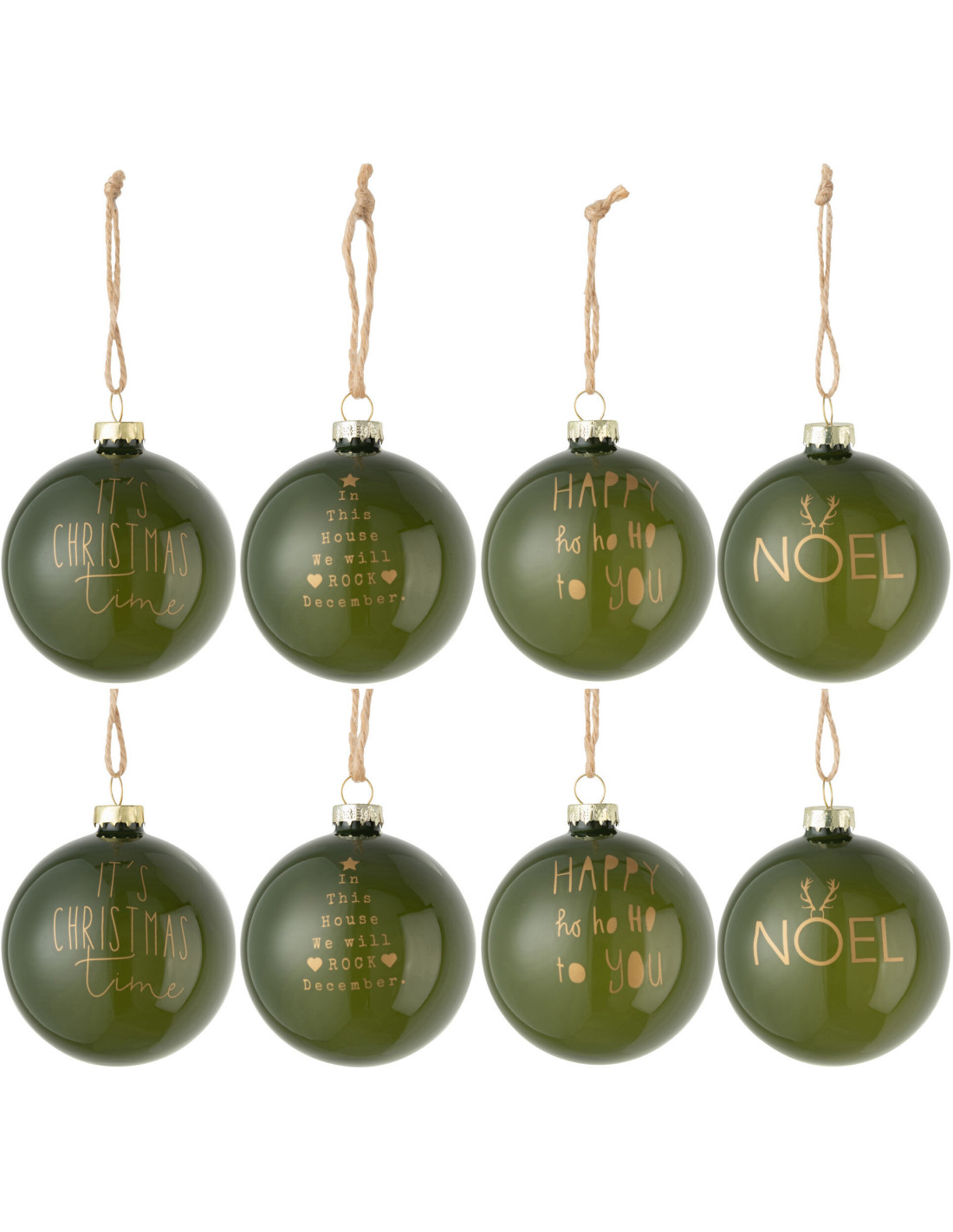 Boule de Noël avec message en Verre Vert (Lot de 8)