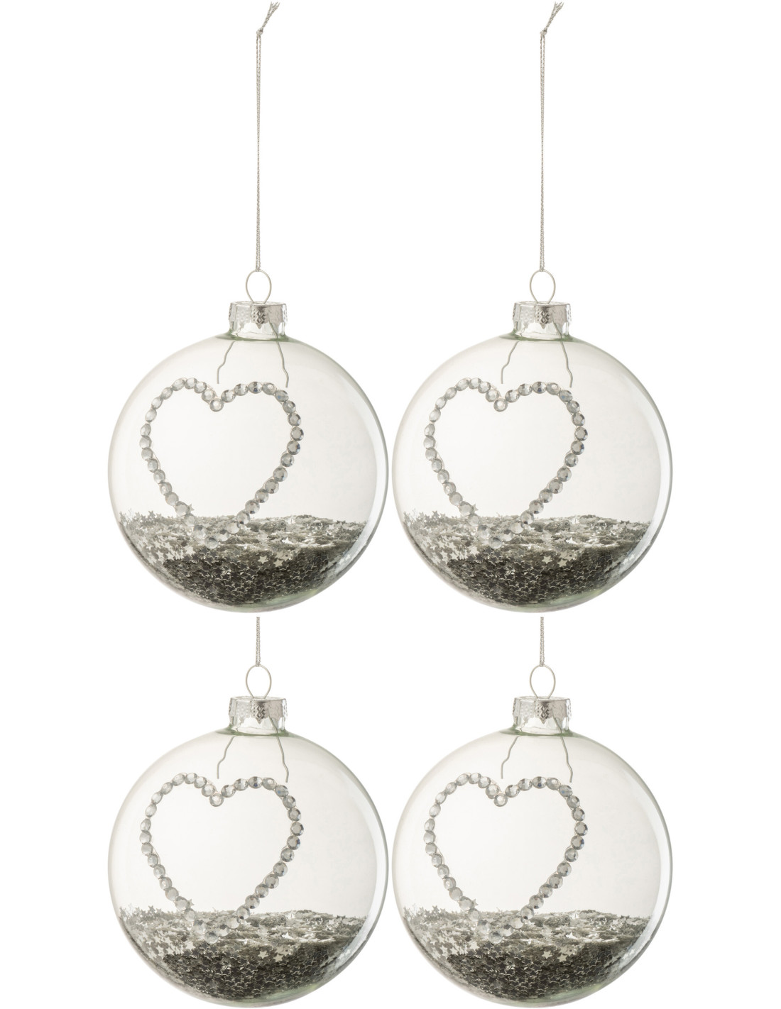 Boule de Noël Coeur en Verre Transparent Strass Argenté Avec paillettes (Lot de 4)