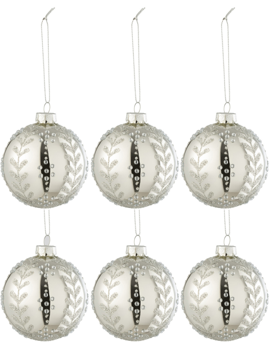 Boule de Noël en Verre Argenté Motif feuilles Avec paillettes (Lot de 6) - 1