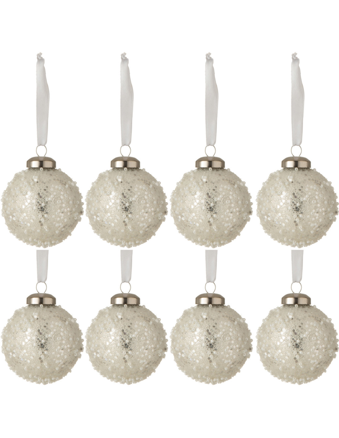 Boule de Noël en Verre Argenté Perle Blanc (Lot de 8) - 1