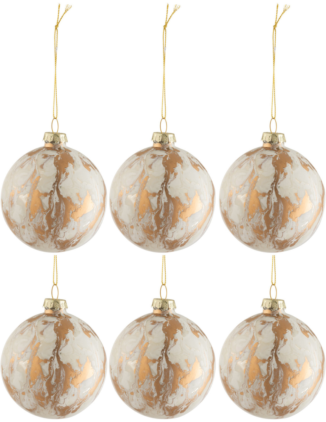 Boule de Noël en Verre Blanc Doré Motif marbré (Lot de 6)