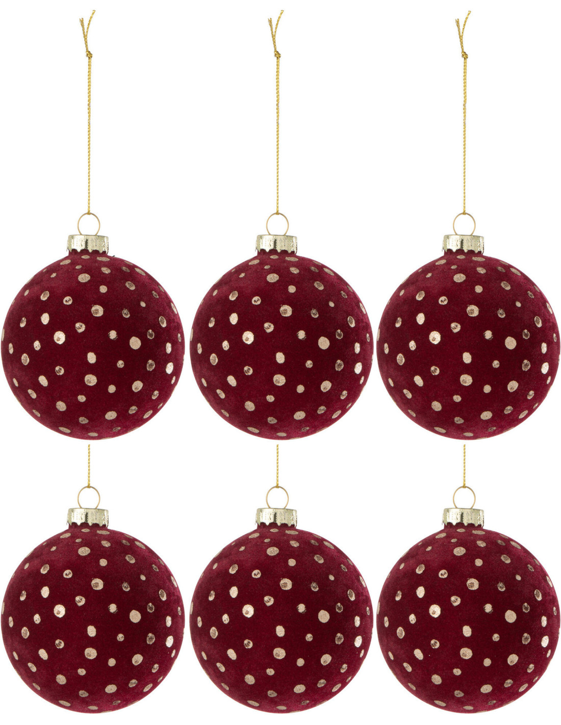 Boule de Noël en Verre Bordeaux Doré motif Points Effet velours (Lot de 6)