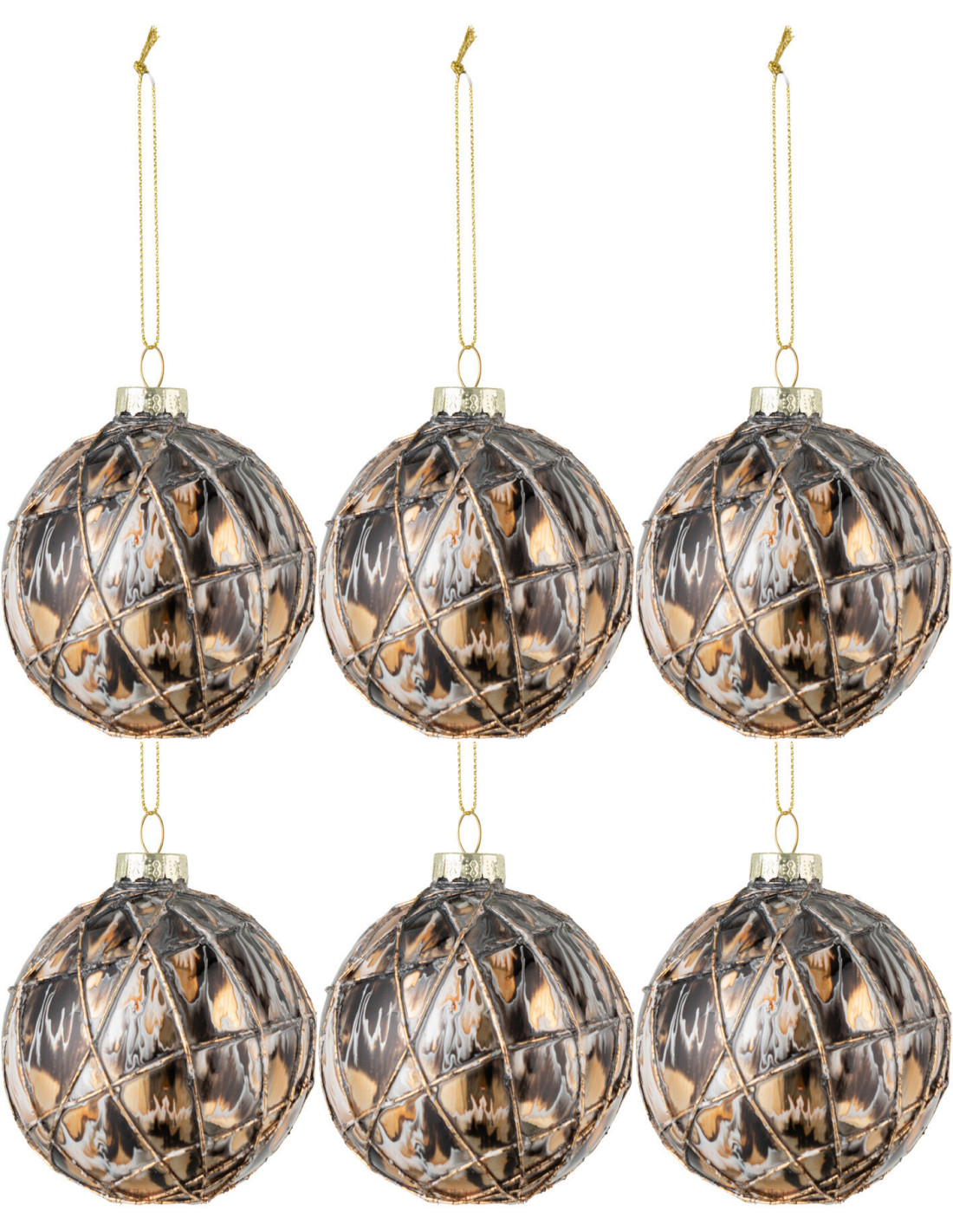 Boule de Noël en Verre Bronze Noir Motif cordes (Lot de 6)