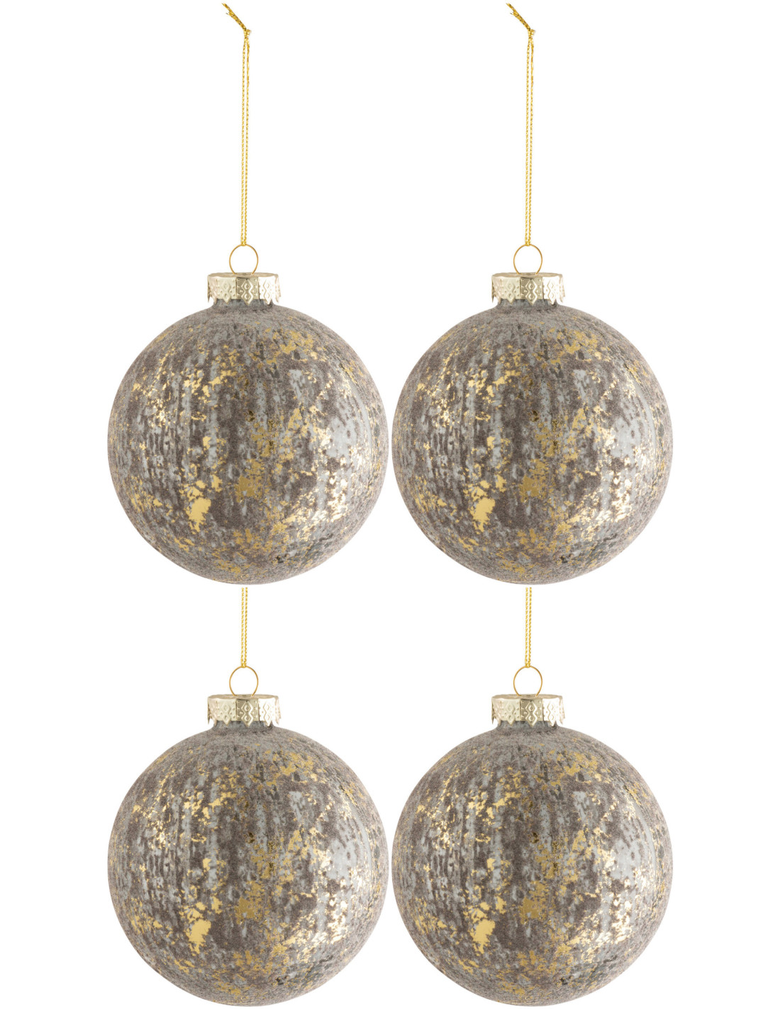 Boule de Noël en Verre Gris Doré Effet vieilli (Lot de 4)