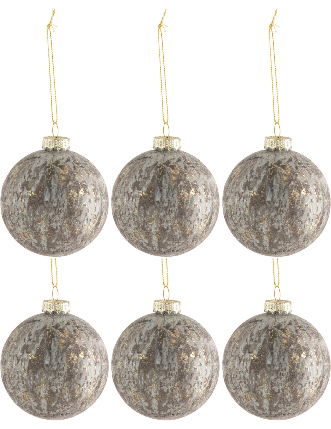 Boule de Noël en Verre Gris Doré Effet vieilli (Lot de 6)