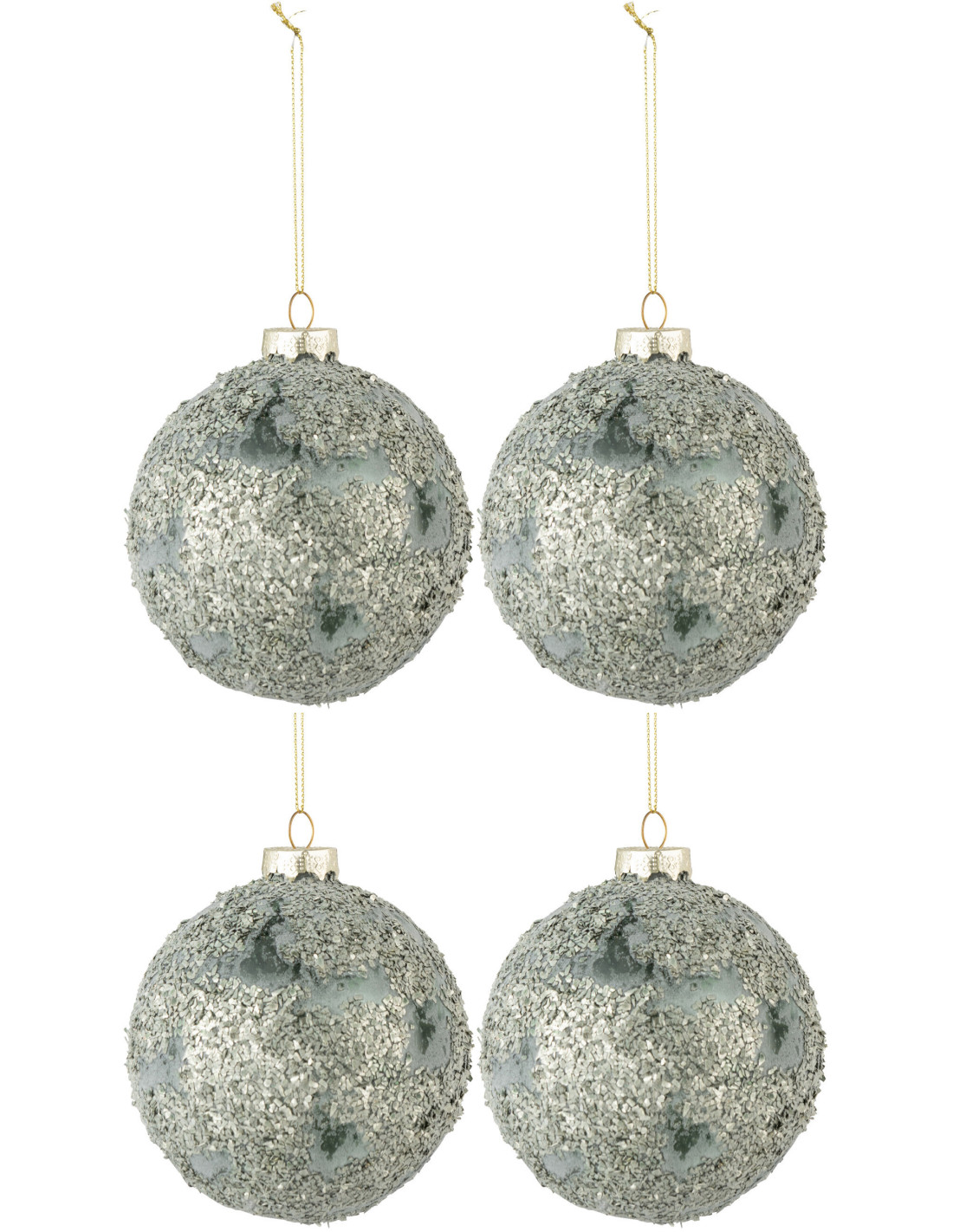 Boule de Noël en Verre Gris Vert Avec pierres fines (Lot de 4) - 1