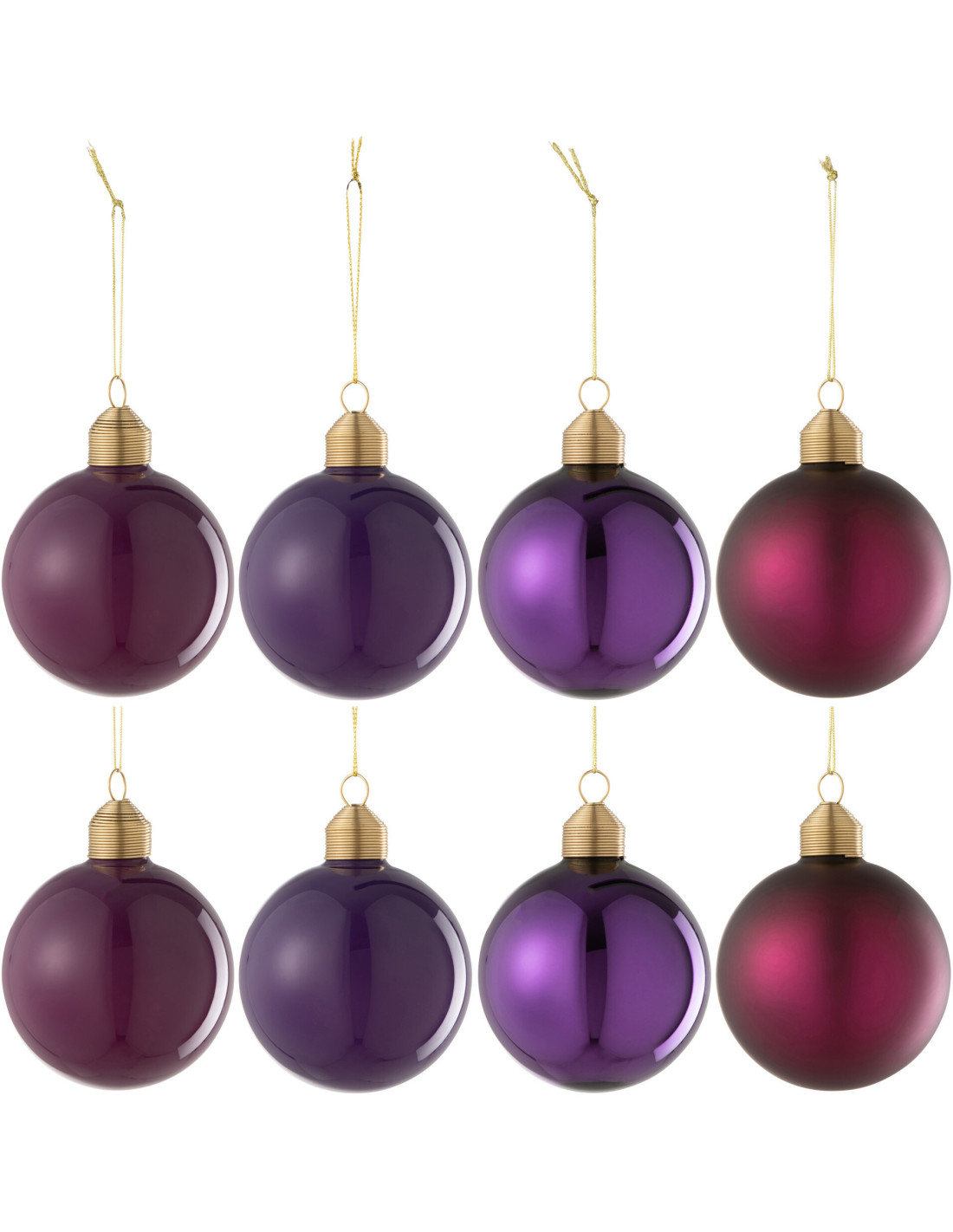 Boule de Noël en Verre Mauve motif Mat et brillant (Lot de 8)