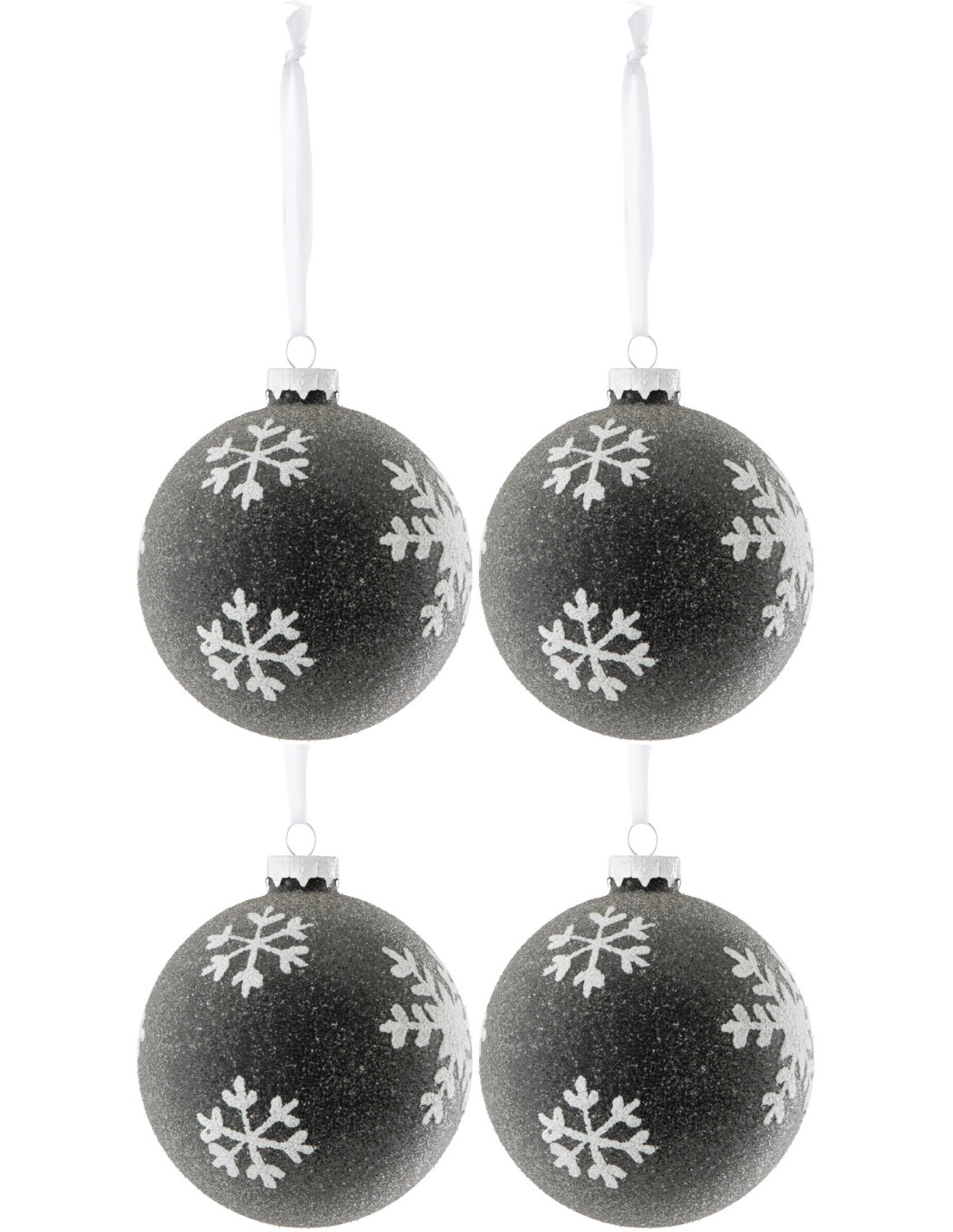 Boule de Noël en Verre Noir Blanc motif Flocons (Lot de 4)