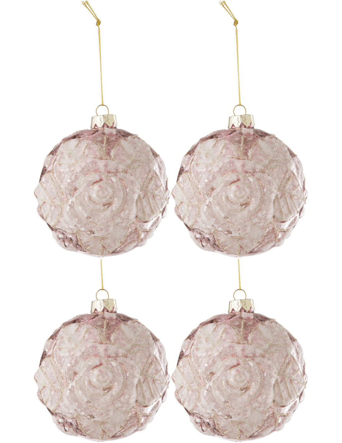 Boule de Noël en Verre Rose motif Rose Avec paillettes (Lot de 4)