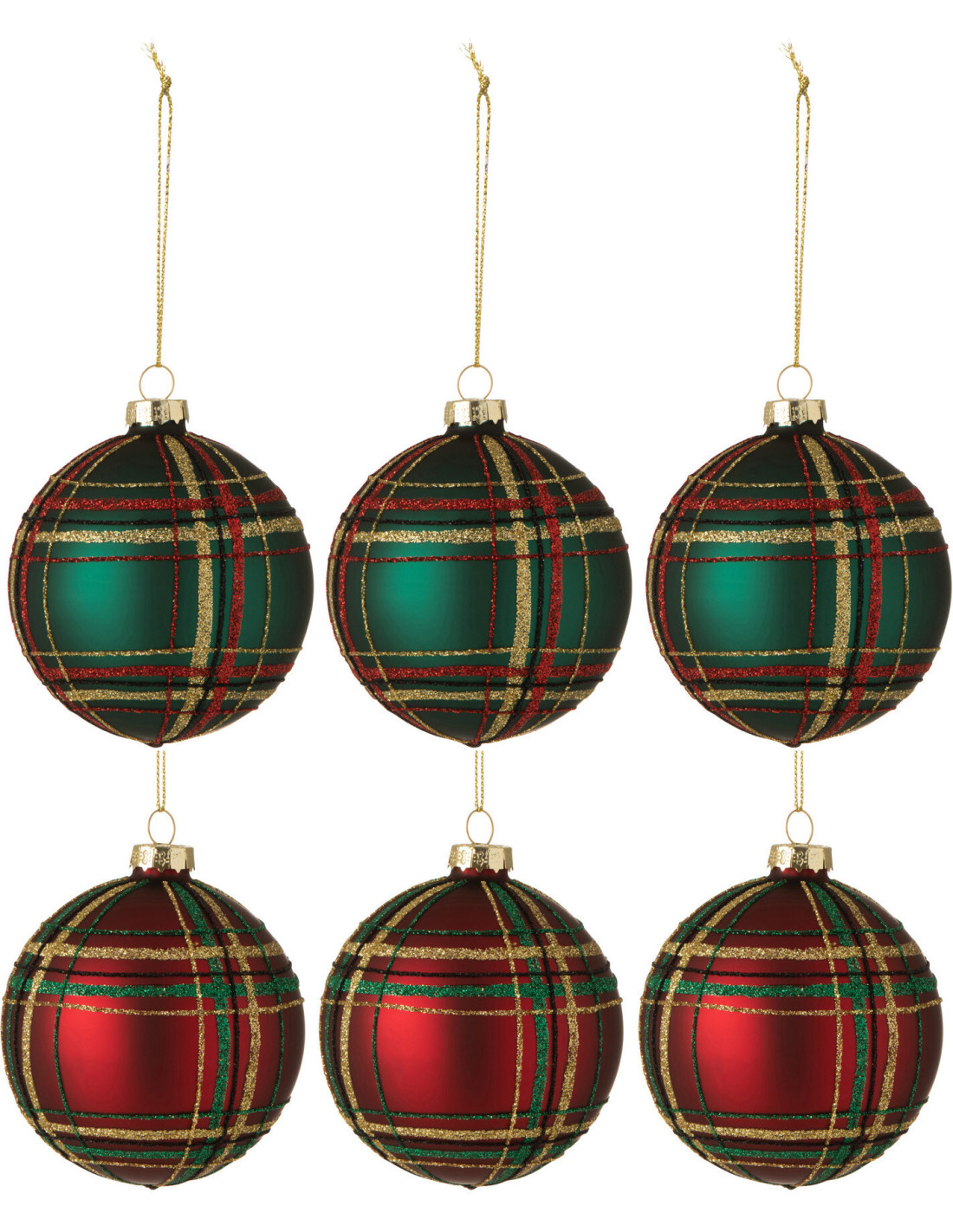 Boule de Noël en Verre Rouge Vert Motif écossais (Lot de 6)