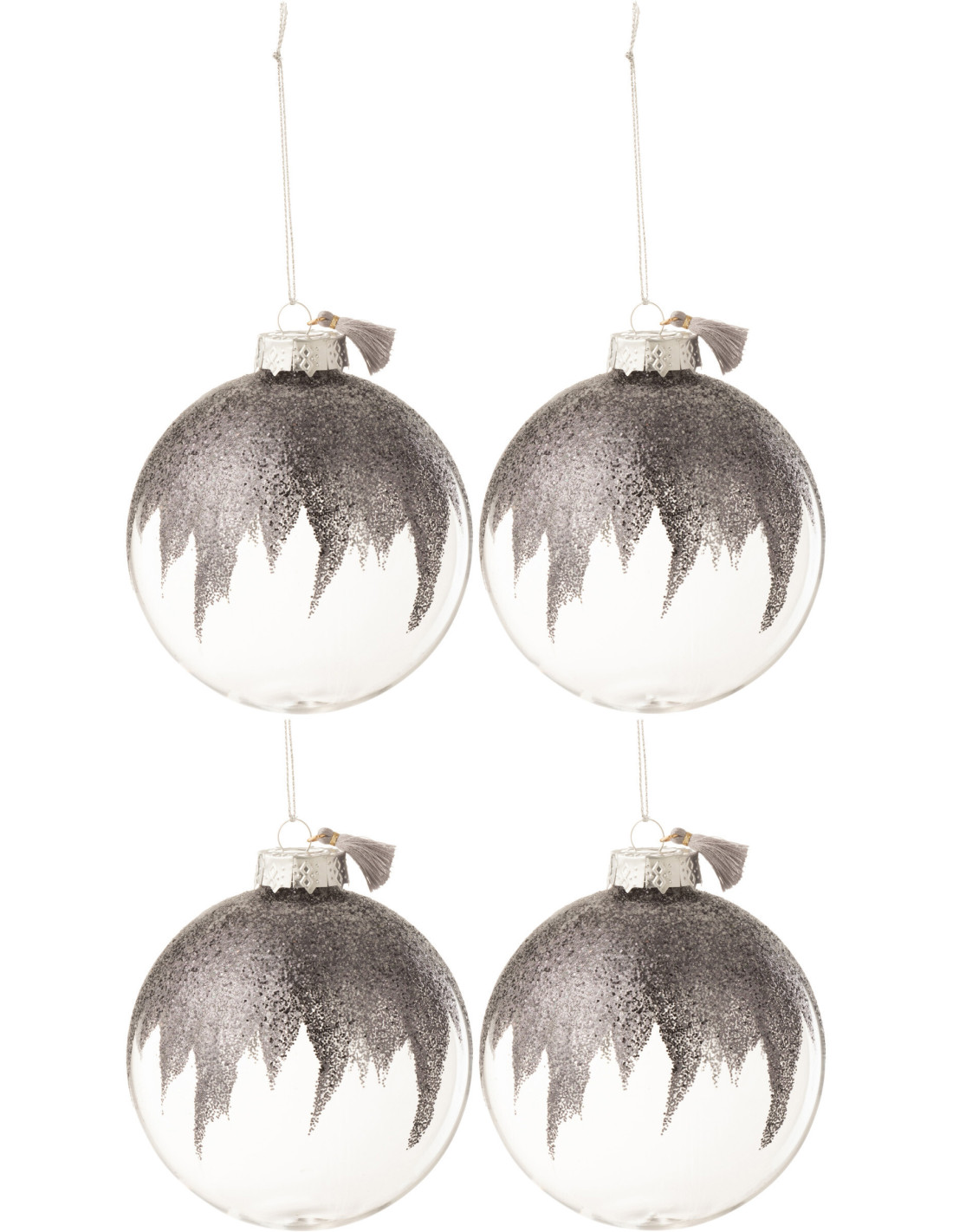 Boule de Noël en Verre Transparent Gris Avec paillette et pompon (Lot de 4)