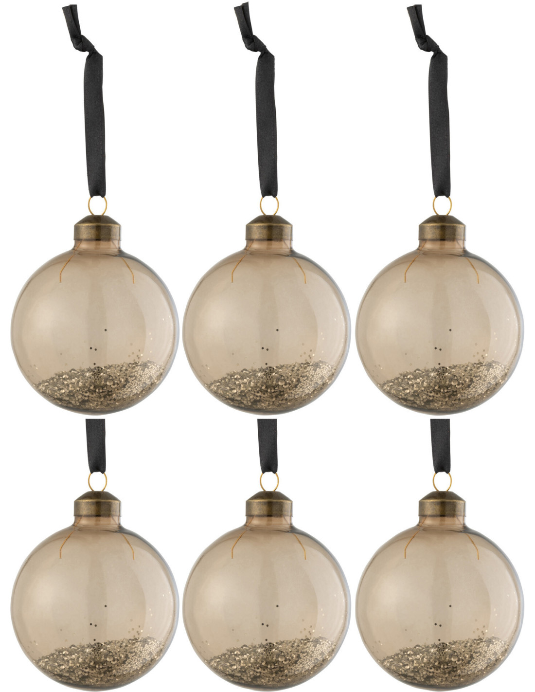 Boule de Noël en Verre Transparent Marron Avec paillettes (Lot de 6) - 1
