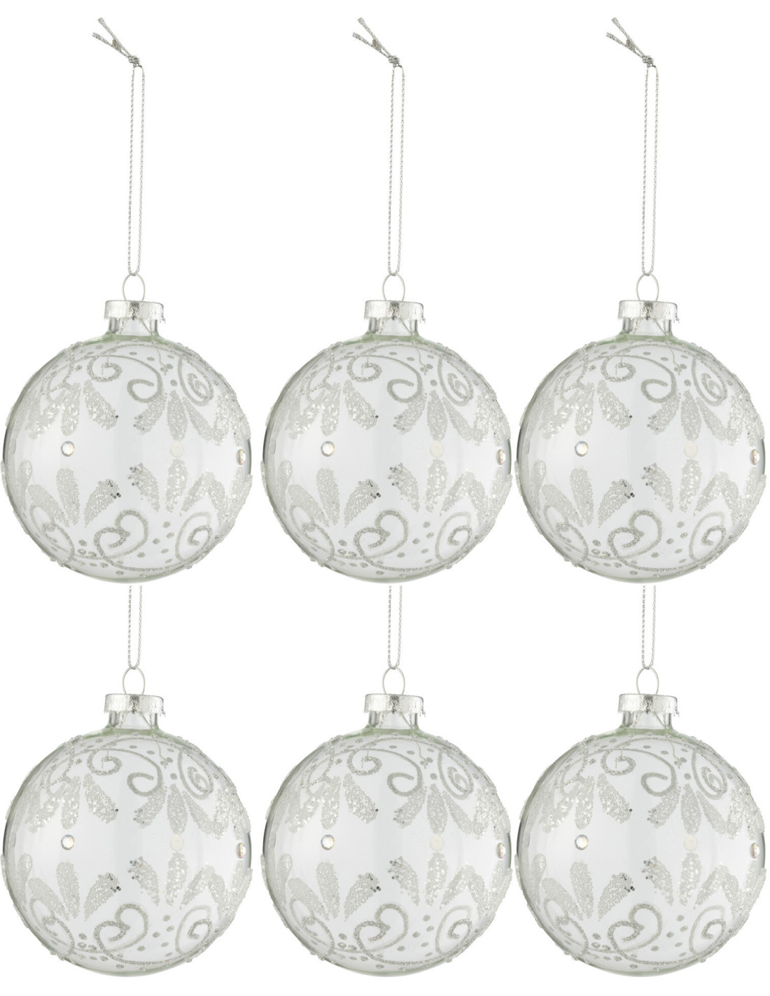 Boule de Noël en Verre Transparent Motif argenté (Lot de 6)