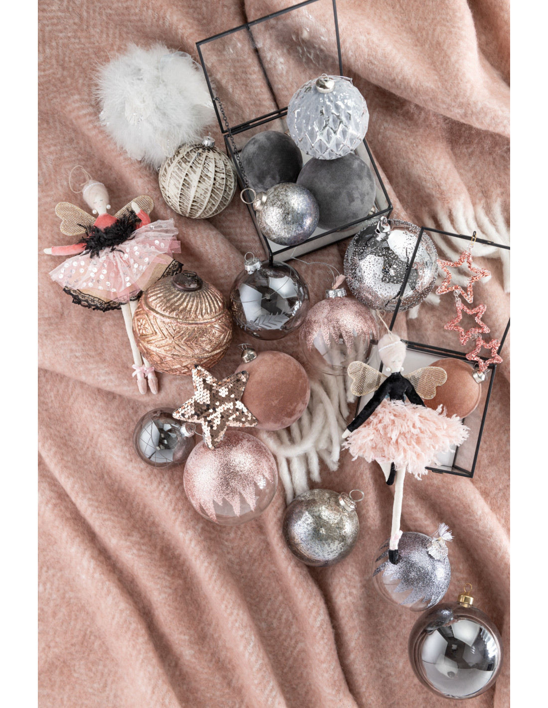Boule de Noël en Verre Vieux rose Effet velours (Lot de 4)