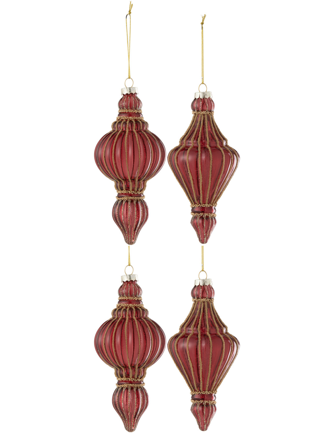 Boule de Noël Goutte en Verre Rouge Doré (Lot de 4) - 1