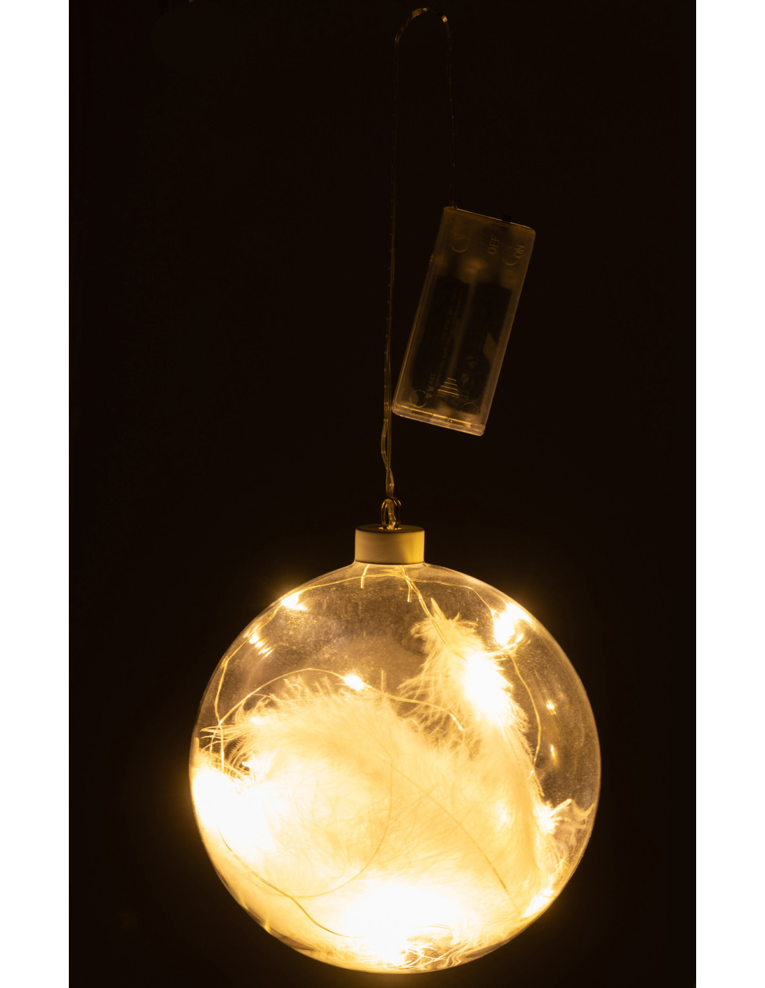 Boule de Noël Lumineuse Led XXL en Verre Transparent Blanc Avec plumes - 1