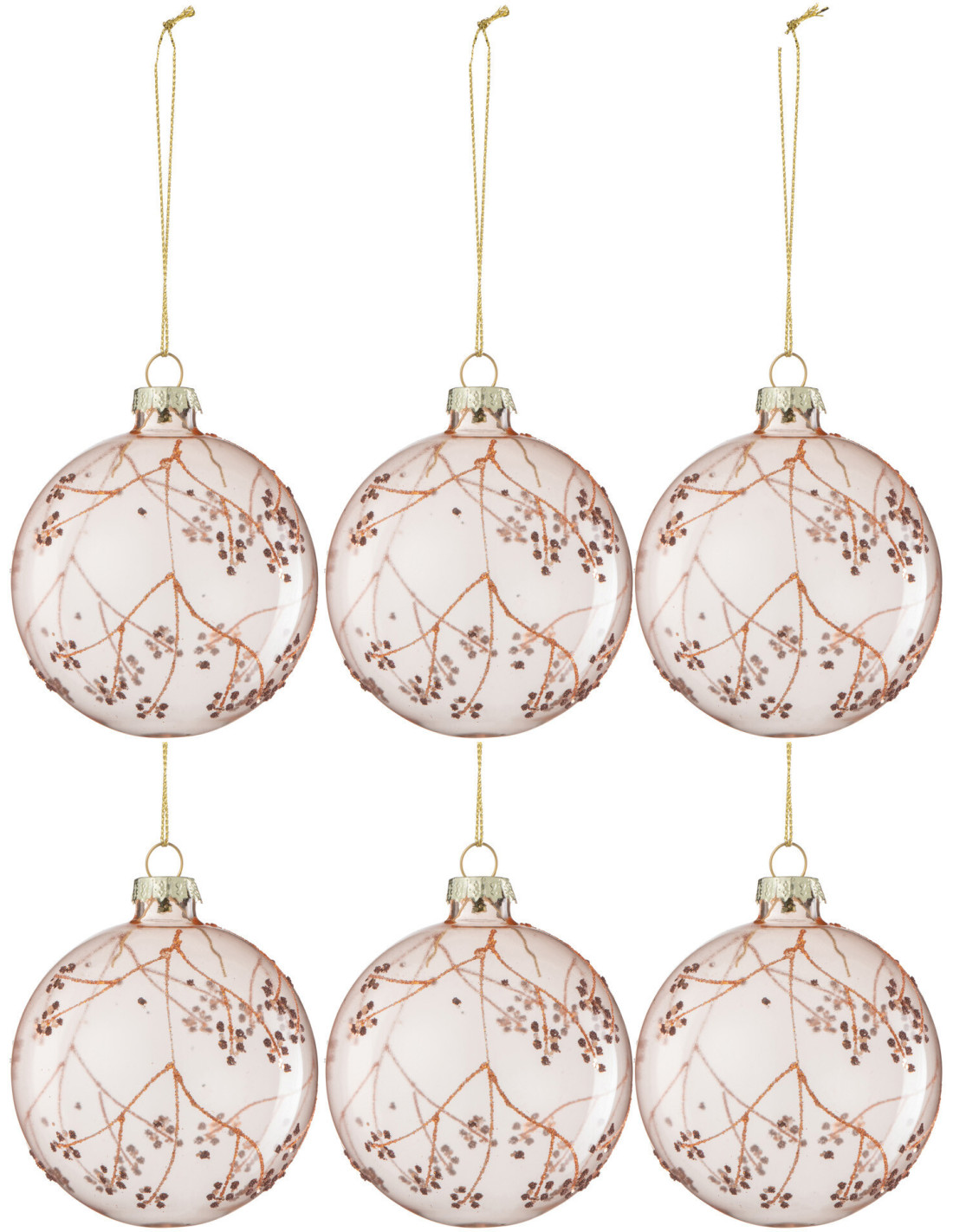 Boule de Noël Pomme de pin en Verre Rose motif Branches (Lot de 6)