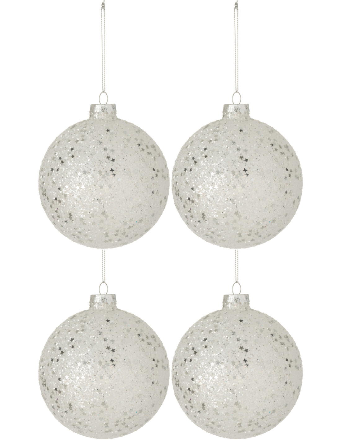 Boule de Noël XL en Verre Argenté Motif étoiles (Lot de 4)