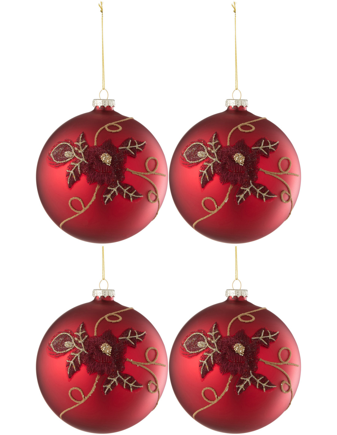 Boule de Noël XL en Verre Rouge motif Fleur (Lot de 4)