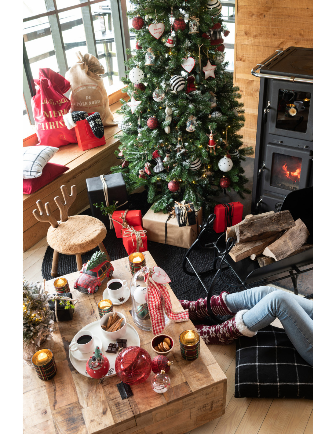 Boule de Noël XL en Verre Rouge Motif rosaces - 3