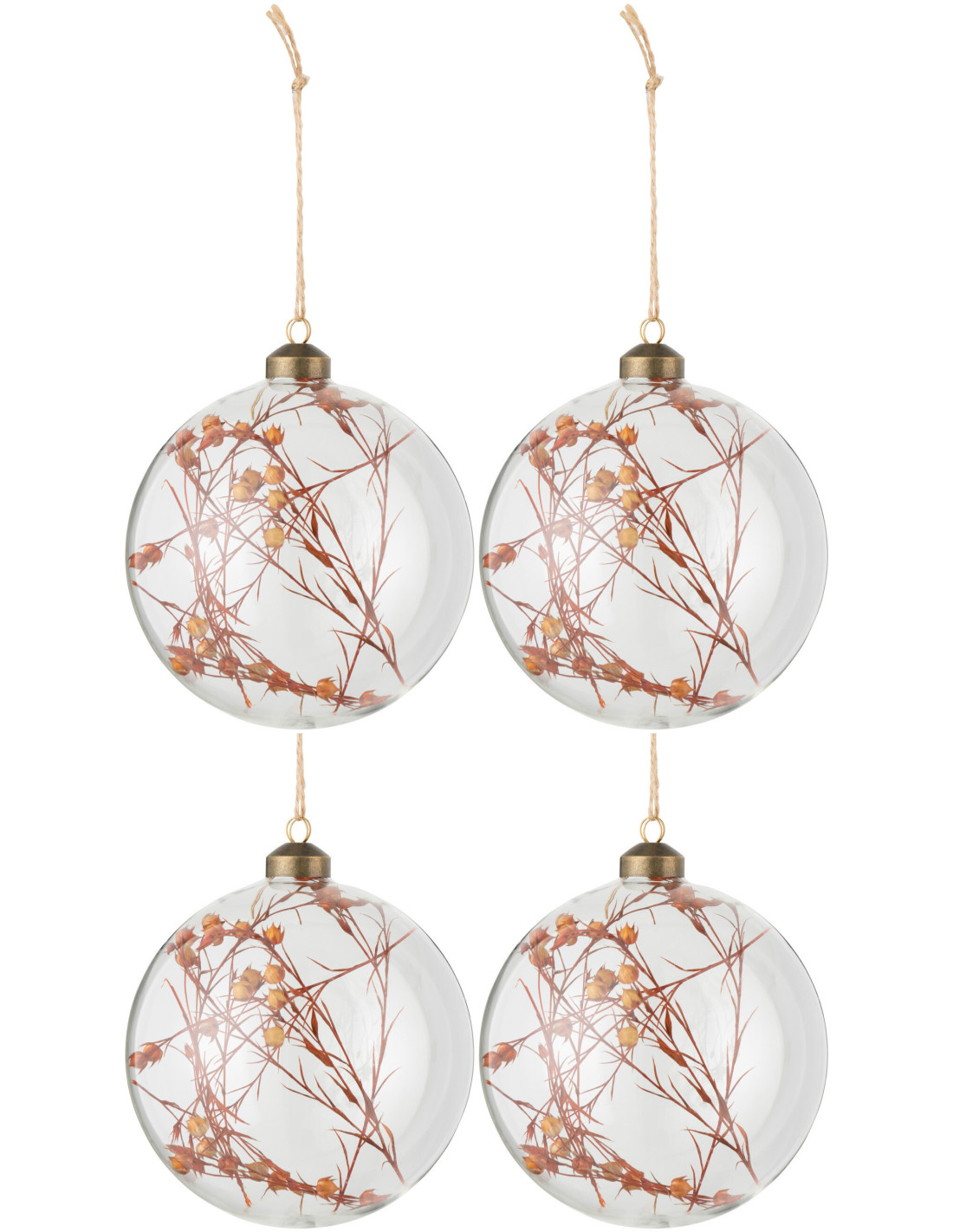 Boule de Noël XL en Verre Transparent Fleur séchée Orange (Lot de 4)