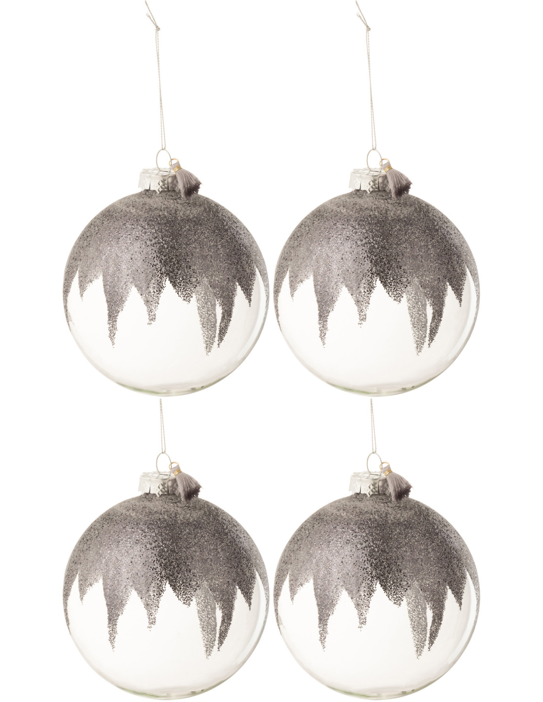 Boule de Noël XL en Verre Transparent Gris Avec paillette et pompon (Lot de 4) - 1